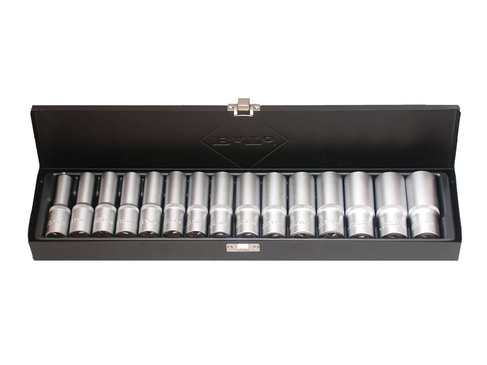 Professionelt 1/2″ topsæt med lange 6-kant toppe i størrelserne 10–24 mm. Den lange udførelse giver sikker adgang til dybtliggende fastgørelser og kontrolleret momentoverførsel ved montage, service og reparation. Sættet leveres overskueligt organiseret i en slidstærk metalboks.