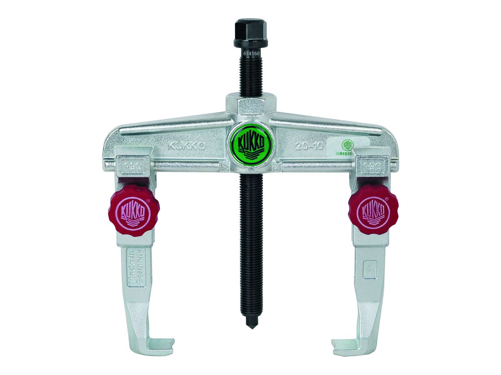 KUKKO 20-10+ er en 2-armet universalaftrækker med glidende, altid parallelle aftrækkerkroge og hurtig justering. Værktøjet bruges til ud- og indvendig aftrækning af lejer, tandhjul og skiver, der er monteret på en aksel og frit tilgængelige. Se kategorien 2-armet aftrækker for relaterede løsninger.