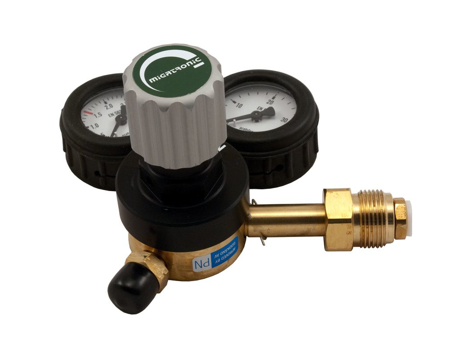 - Manometre: To integrerede manometre for flasketryk og arbejdstryk