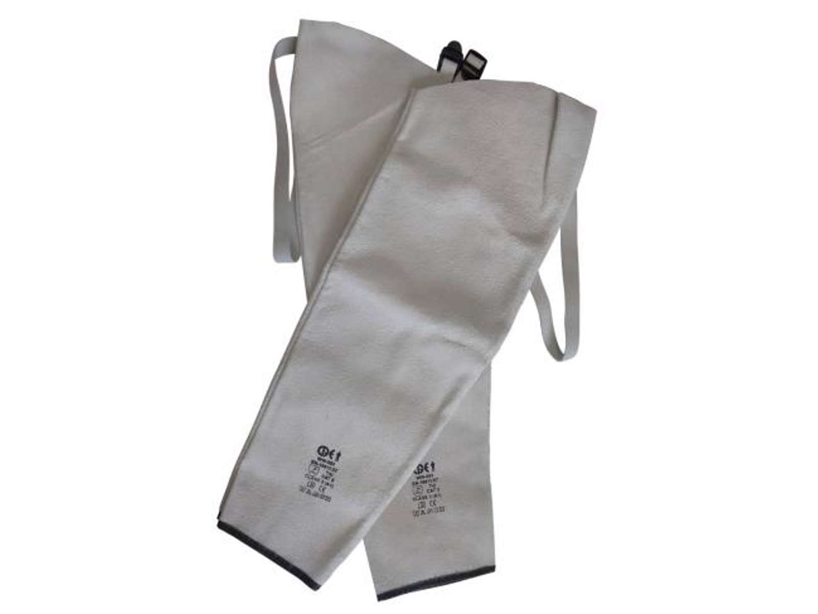 Disse svejseærmer, lavet af spaltmateriale, repræsenterer en lang model i produktserien. De leveres i et sæt bestående af to ærmer.