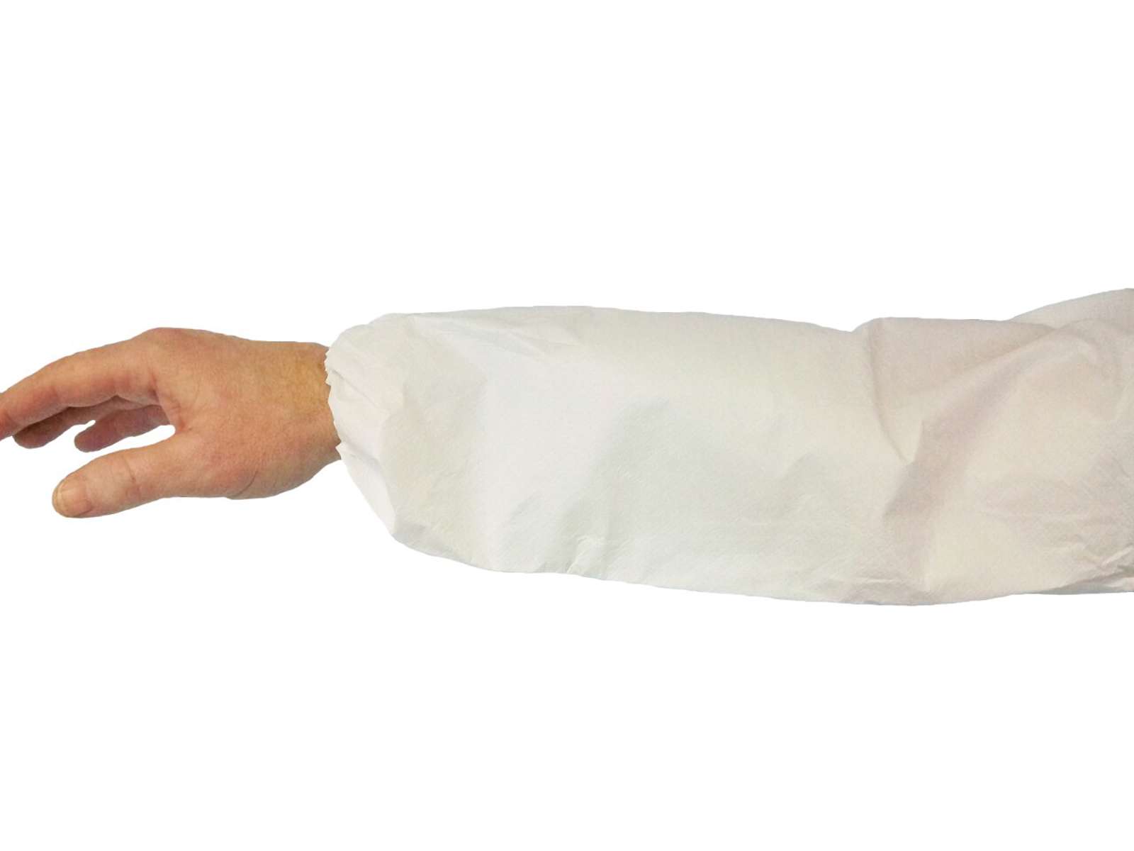 Engangsbeskyttende ærmeovertræk, lavet til at yde optimal beskyttelse, strækker sig 40,5 cm, fra håndleddet og op til toppen af armen. Den sikre elastiske afslutning ved begge ender garanterer et tætsiddende fit, mens materialets kvalitet udgør en barriere mod almindelige ikke-skadelige stoffer.