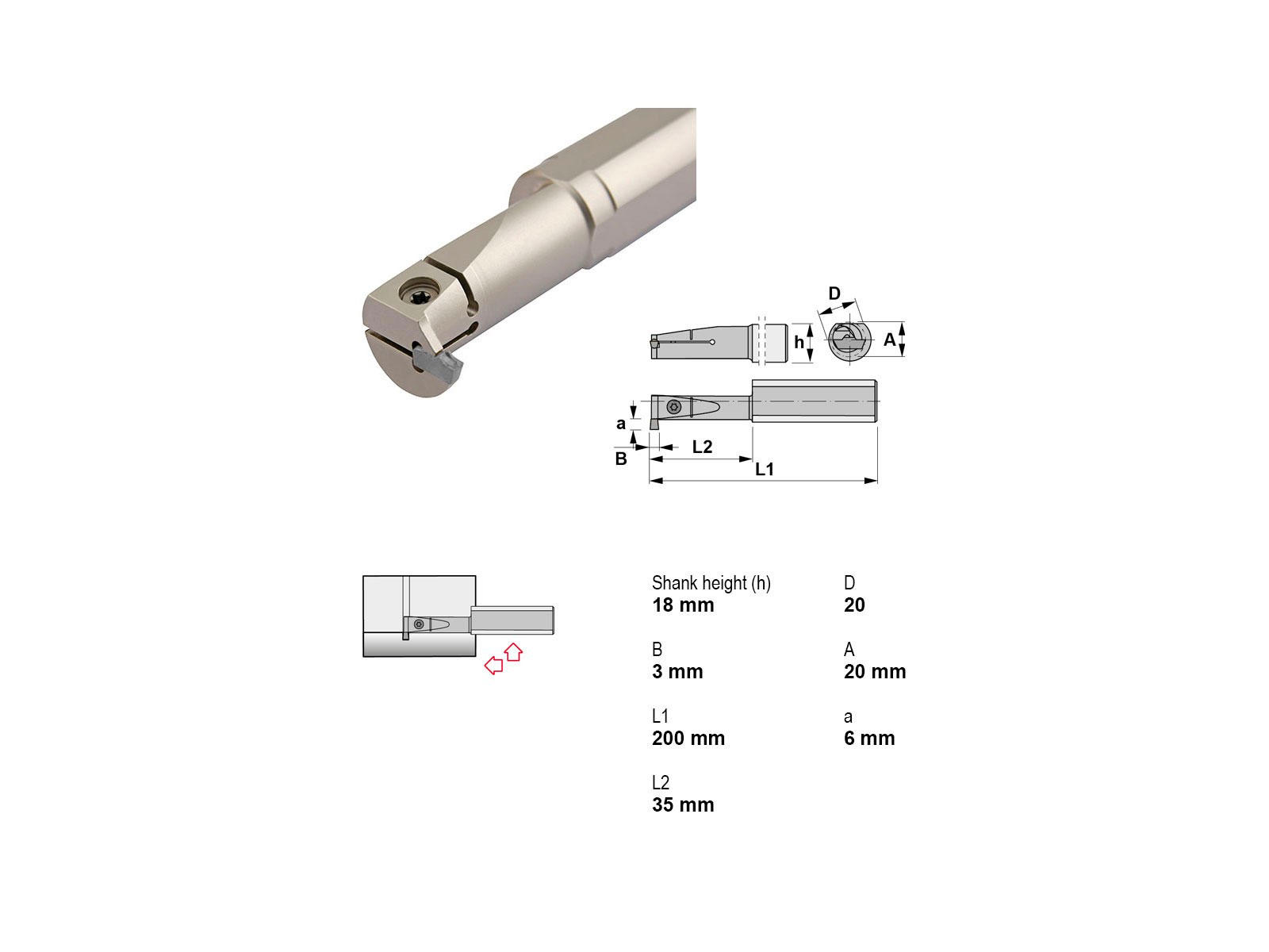 Canela indvendig stikstål S20Q-STXNR22 sikrer præcisionsarbejde til indvendig drejning og stikning. Robust Ø20 mm skaft og 200 mm længde gør den ideel til professionelle opgaver.
