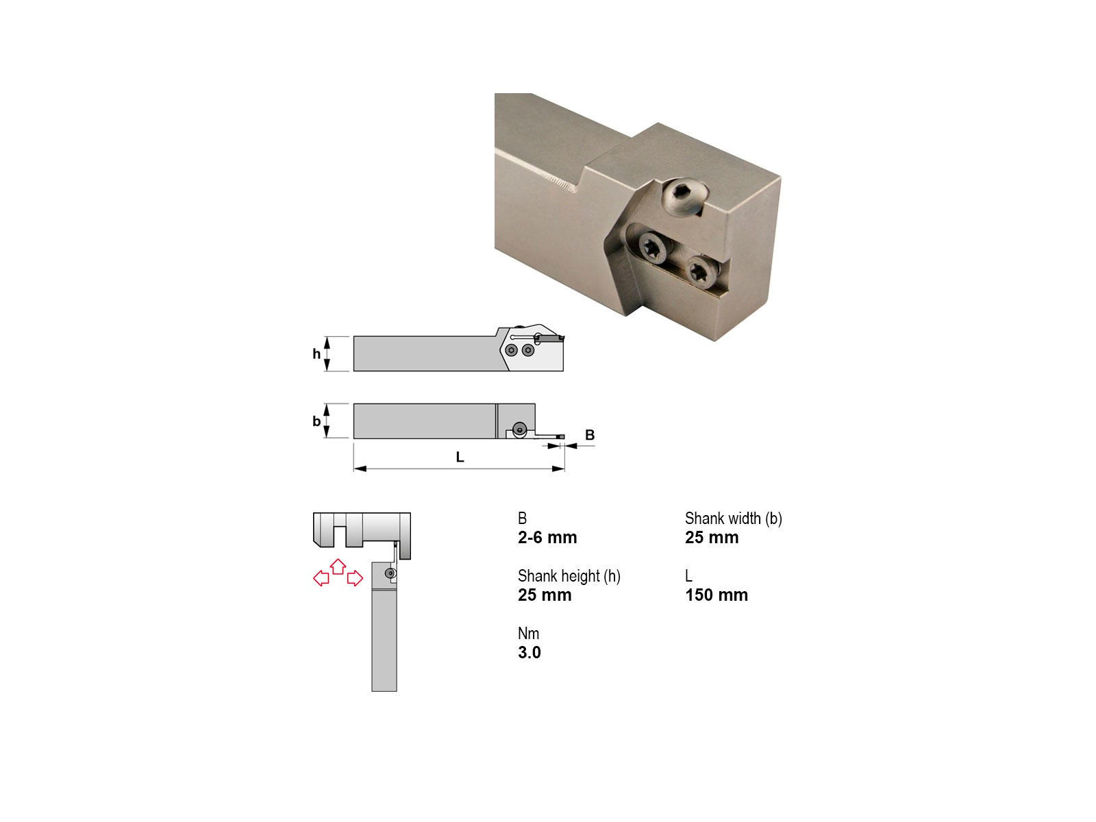 Canela CZGDL2525M26 stikstålsholder er et robust værktøj designet til præcisionsbearbejdning. Denne stikstålsholder er modulært opbygget og ideel til CZFDL-stikstål. Med et 25x25 mm skaft og en længde på 150 mm er den skabt til at give stabilitet under bearbejdningen, selv uden køling. Perfekt til krævende opgaver, hvor nøjagtighed og holdbarhed er i fokus.
