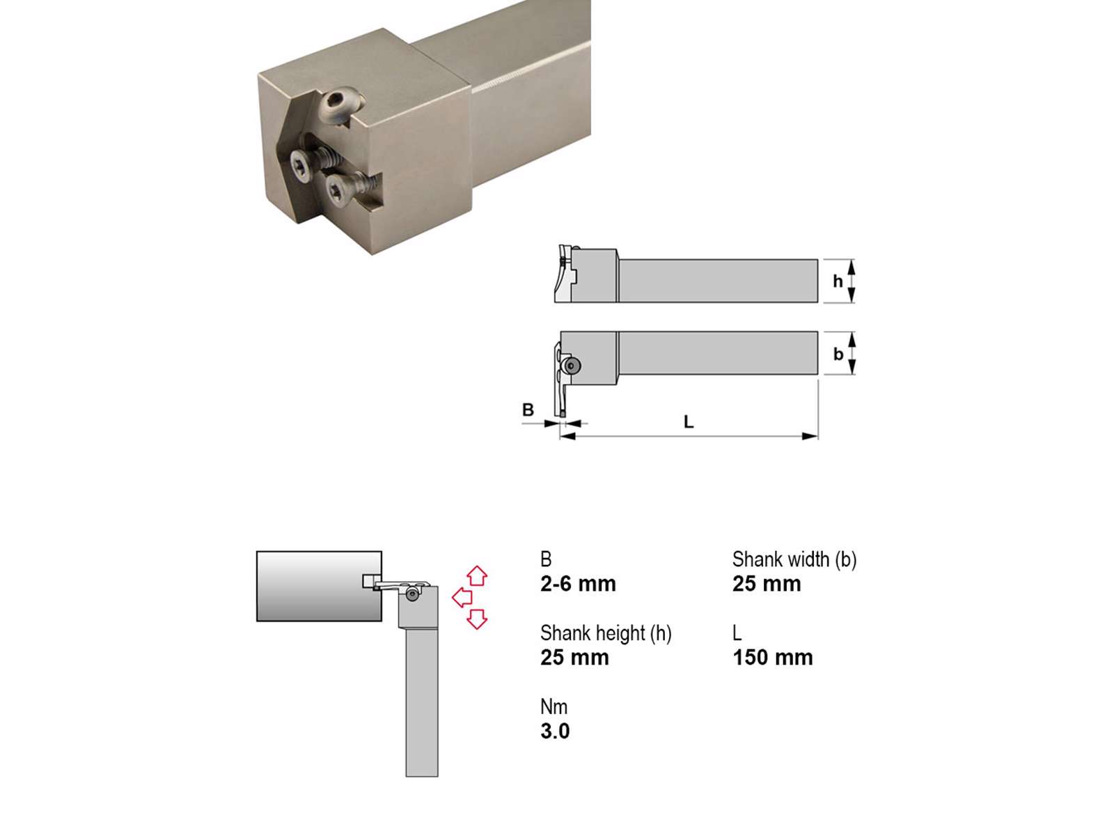 Canela CZFDR2525M26 stikstålsholder er designet til præcision og holdbarhed. Med sin robuste opbygning og modulære design passer den perfekt til CZFDR.. stikstål og sikrer stabilitet uden køling. Denne holder er ideel til opgaver, hvor præcision og pålidelighed er afgørende. Dens solide 25x25 mm skaft og en længde på 150 mm gør den velegnet til krævende opgaver inden for bearbejdning.