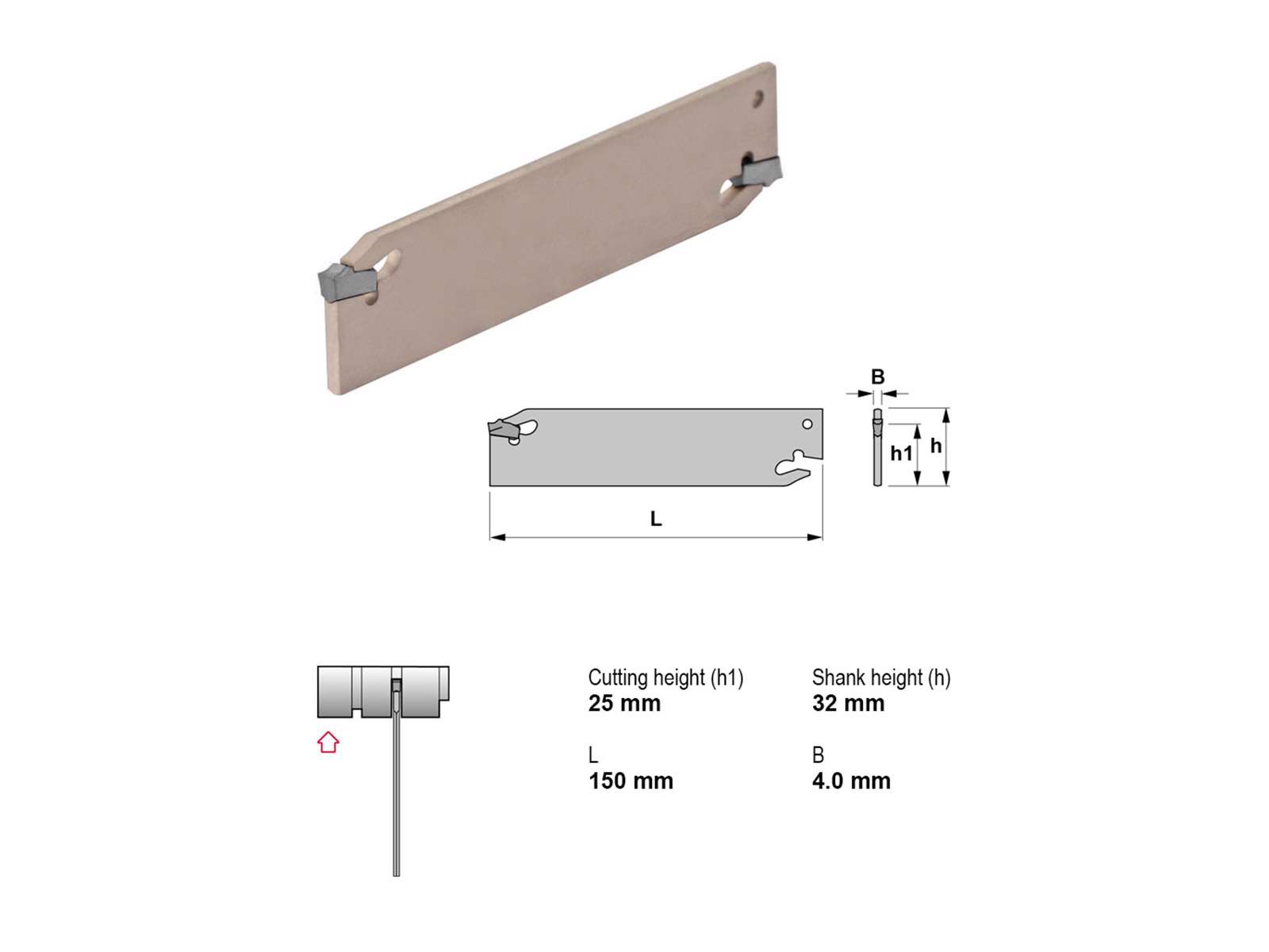 - Skærehøjde: 25,0 mm