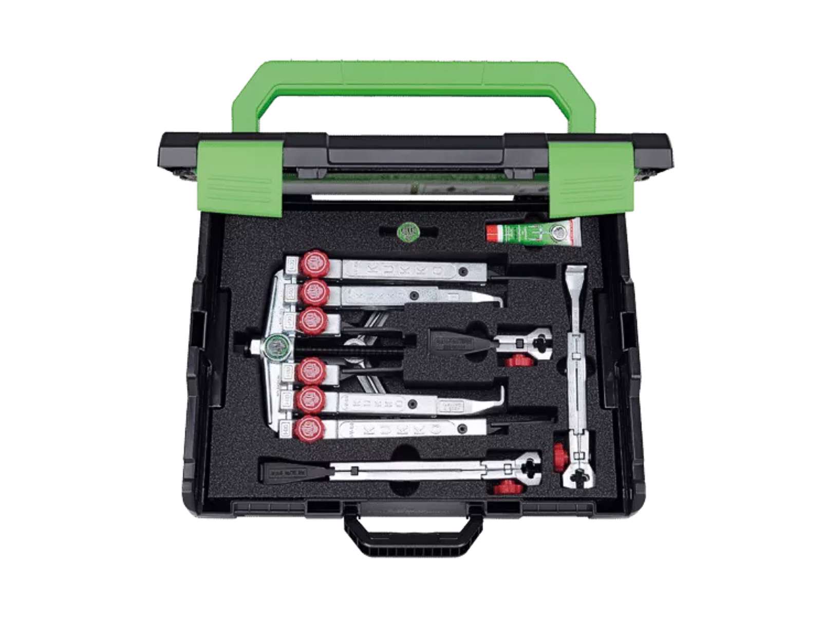Dette avancerede universalaftrækkersæt er konstrueret til at betjene både 2- og 3-armet aftrækningsbehov, hvorved det giver den nødvendige alsidighed til professionelle opgaver. Udviklet med præcision og teknisk ekspertise, er dette sæt en uvurderlig tilføjelse til enhver værktøjskasse, især i situationer med begrænset plads.