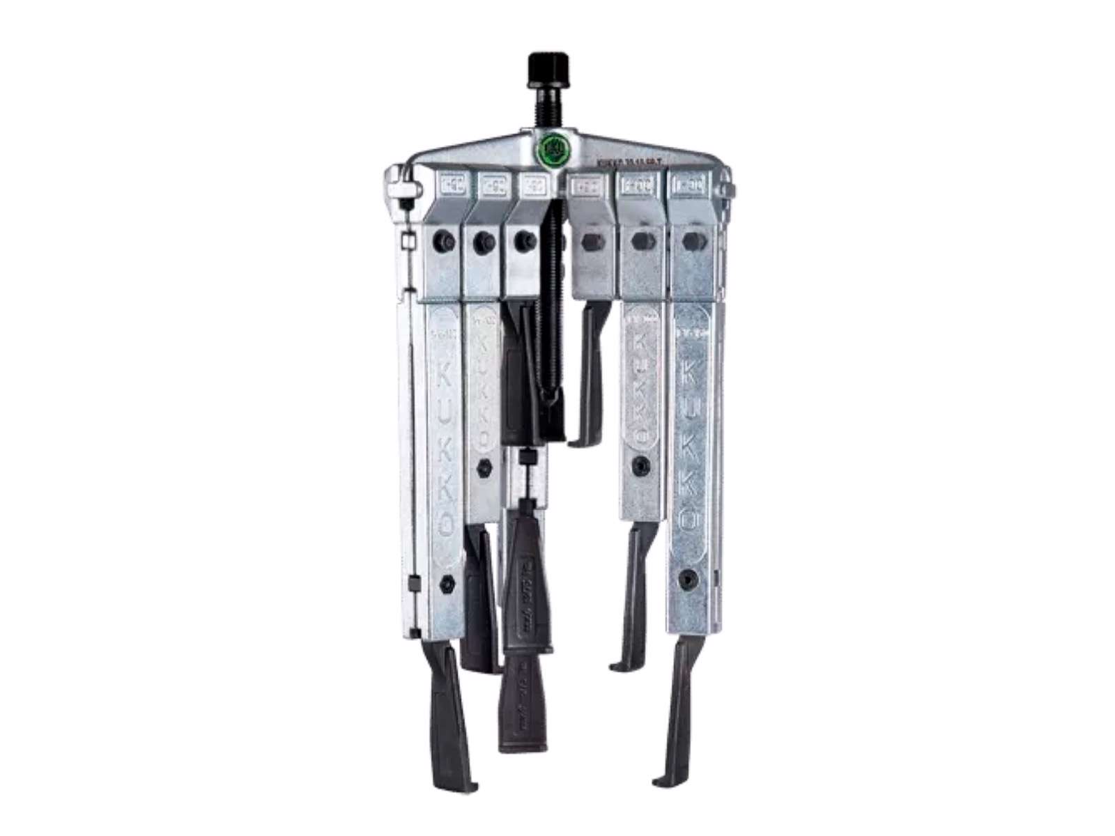 Dette 3-armede universal aftrækkersæt fra KUKKO er designet til præcise og sikre aftrækningsopgaver af gearhjul, lejer, tandhjul, synkronkroppe og andre komponenter. Den er udstyret med ekstremt smalle og hurtigt justerbare kroge, der giver nem adgang til smalle og svært tilgængelige mellemrum. Med den robuste konstruktion og trapezformede støtteflade sikres et effektivt og sikkert greb om komponenterne, uanset størrelsen.