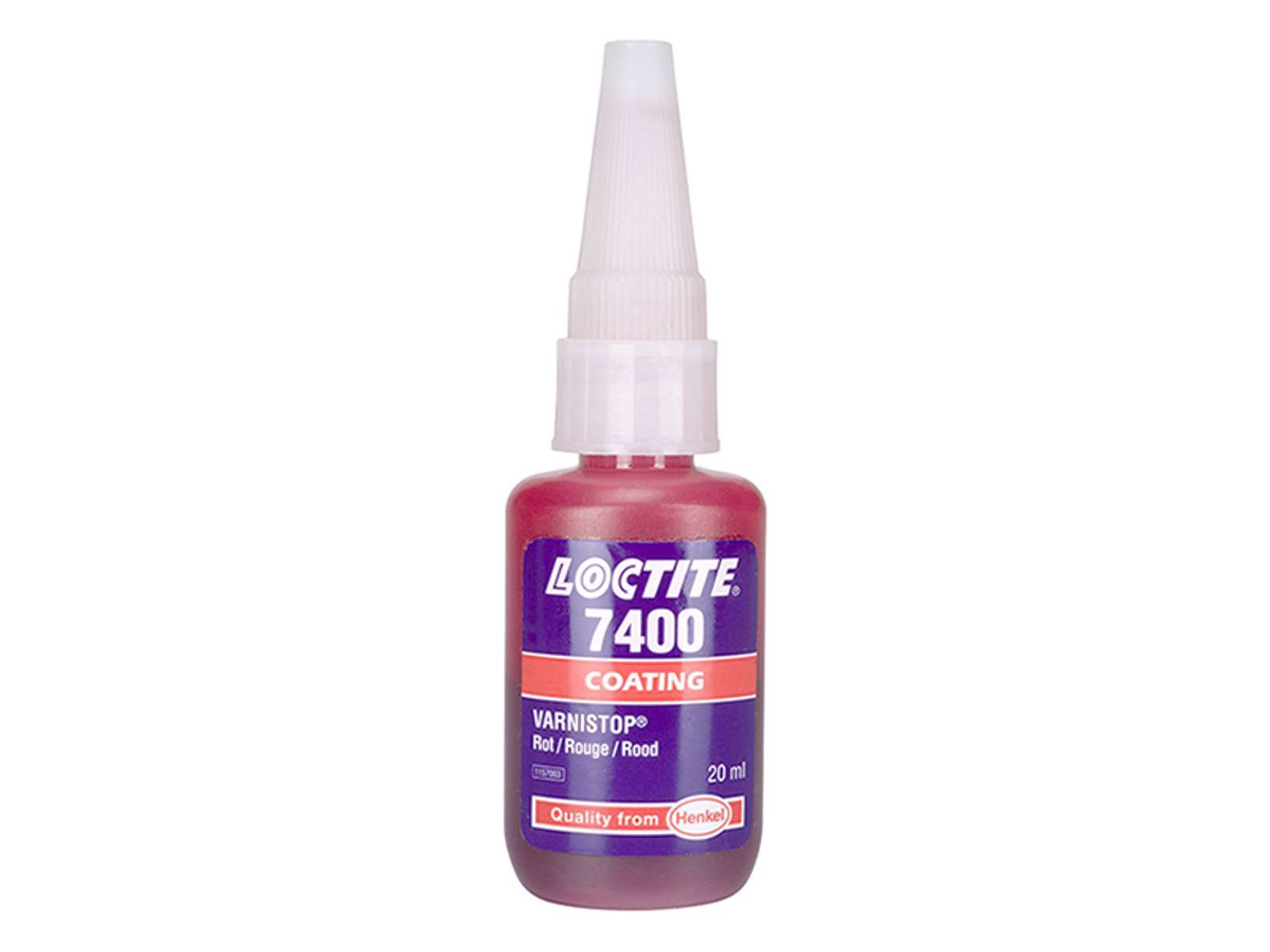 LOCTITE SIKRINGSLAK 7400 er en mørkerød, opløsningsmiddelbaseret markørlak, fremstillet til elektronisk udstyr. Denne enkeltkomponents lak er ideel til at sikre justeringspunkter eller mærke komponenter for at angive, at de er blevet indstillet eller testet. Den tørrer hurtigt ved fordampning af opløsningsmidlet og danner en pigmenteret film af organisk polymer. LOCTITE SIKRINGSLAK 7400 sætter sig på under 5 minutter, er fuldt hærdet efter 6 timer og sikrer god vedhæftning til forskellige underlag. Når lakken er fuldt tør, er den let at se og har god holdbarhed.