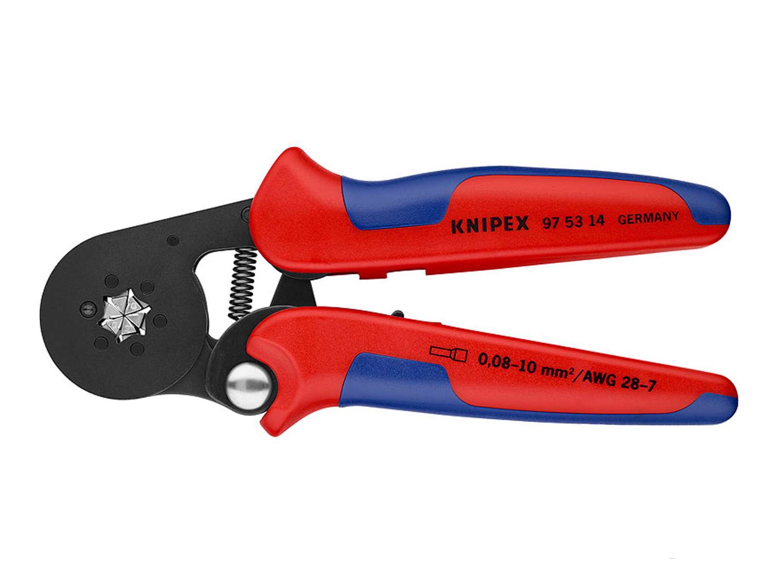 Selvindstillelig crimptang til kabeltyller. Med sideindføring