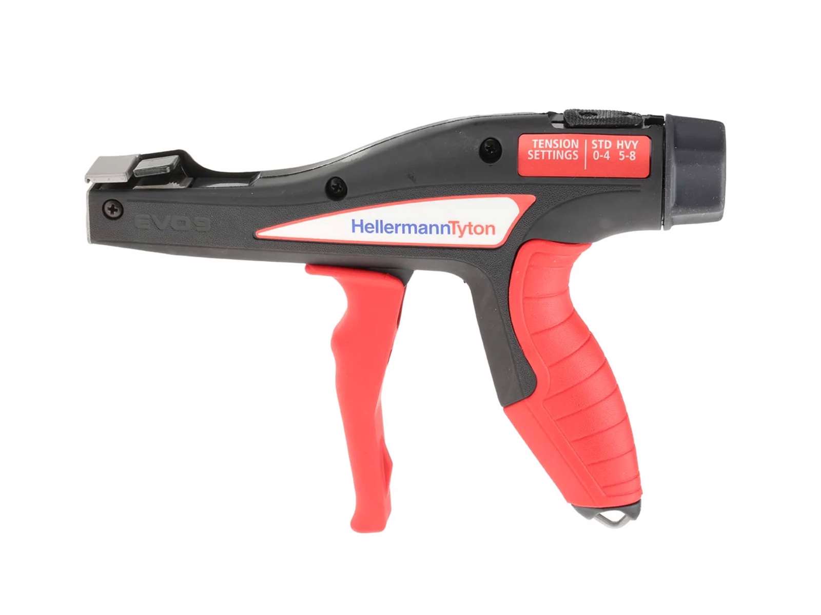 EVO9 kan tilspænde mellem 53 og 307N og er designet til montage af HellermannTyton kabelbindere fra 222N til 1112N med en maksimalbredde op til 13 mm.