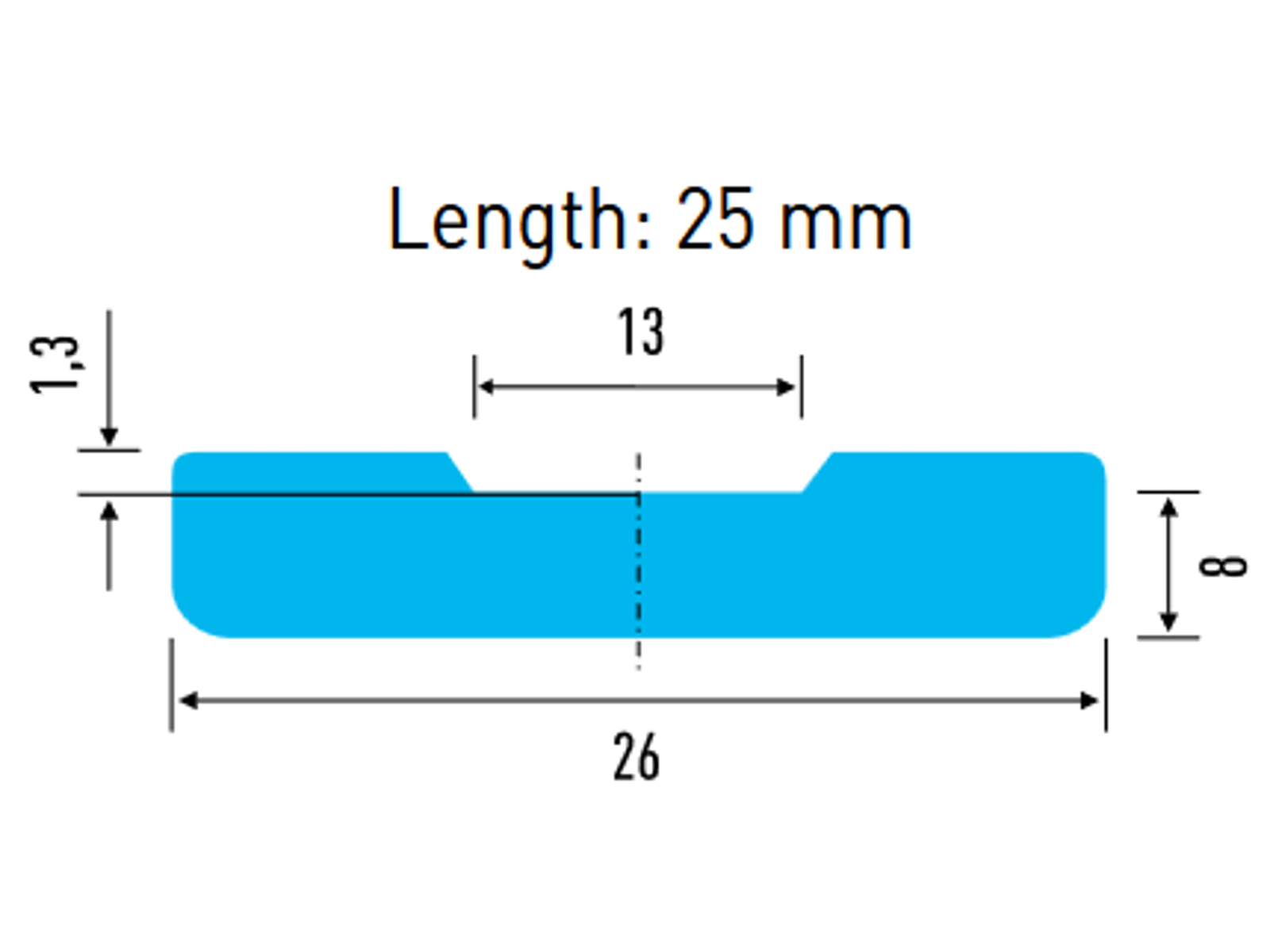 - Flad type keramisk backing med 13 mm bred buet spor og 1,3 mm dybde.