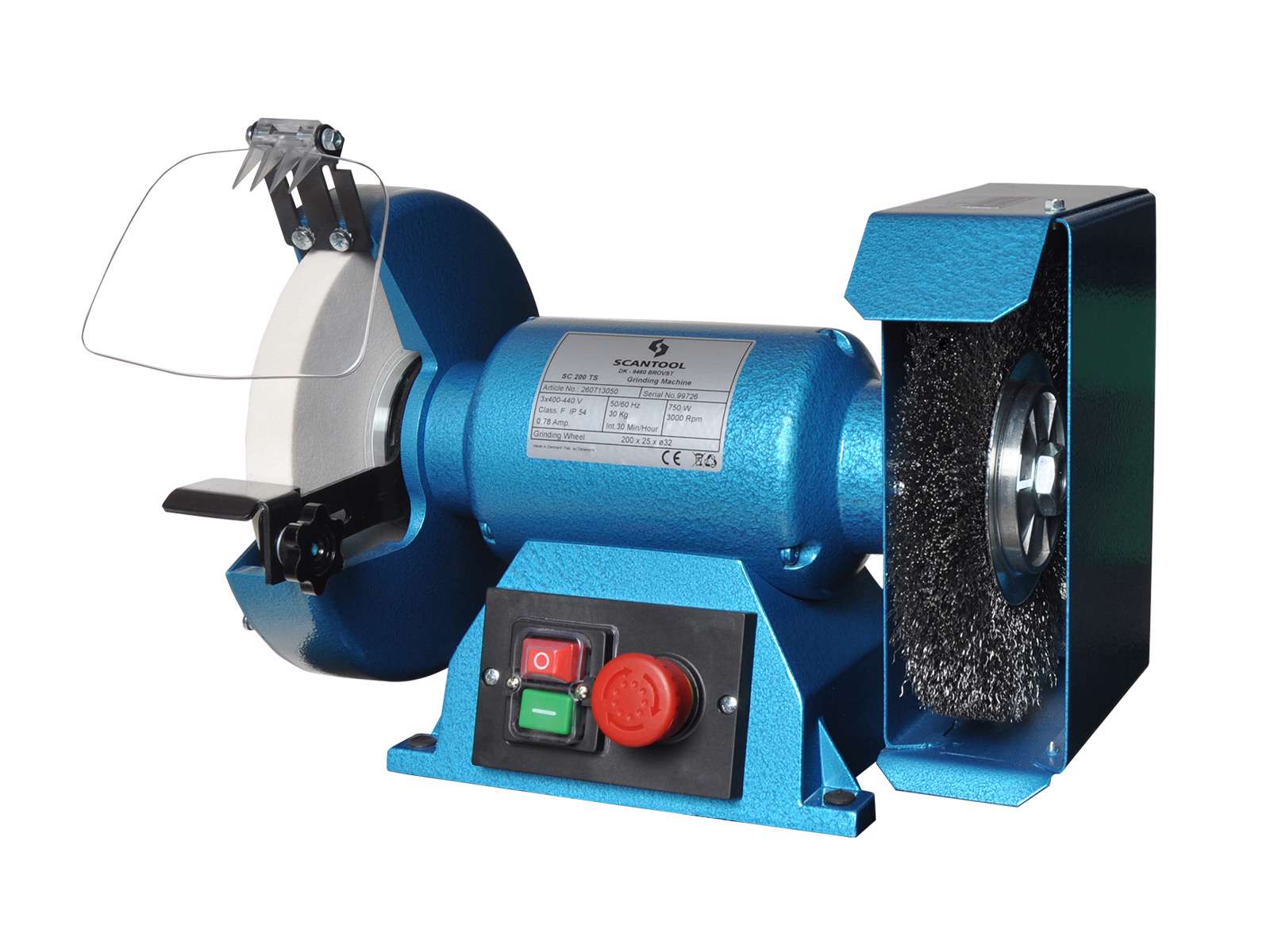 SC 200TS (3x400V)med EK hvid, fin slibeskive og stålbørste.