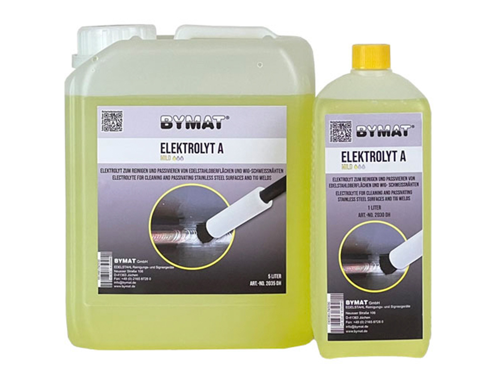 BYMAT Elektrolyt A - til mild bejdsning og passivering af svejsninger i rustfrit stål. Anbefales til bejdsning af rustfrie ståloverflader og TIG svejsesømme.