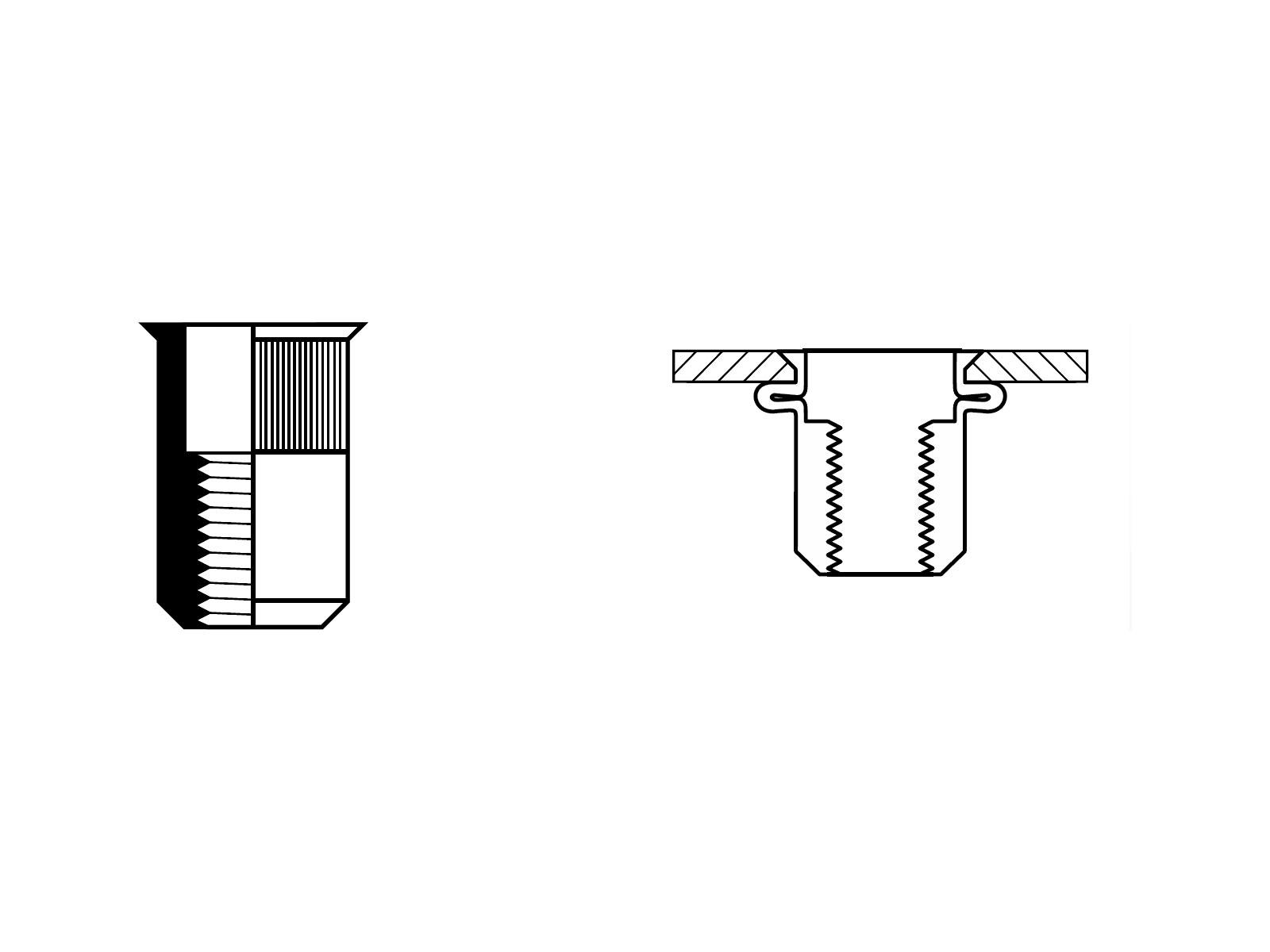 Undersænket stålnittemøtrik med lav profil