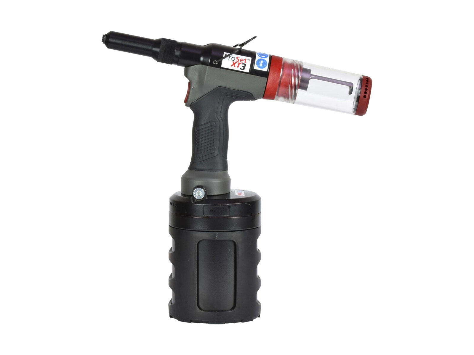 POP ProSet XT3 er en højtydende pneumatik blindnittepistol udviklet til industriel montering af blindnitter, låsebolte og tætningspropper. Med en slaglængde på 26 mm kan XT3 installere lange, højstyrke blindnitter som Monobolt og Interlock i én arbejdscyklus. Værktøjet kombinerer høj trækkraft med lav vægt, hvilket sikrer effektiv og ergonomisk drift ved serieproduktion og gentagne montageopgaver.