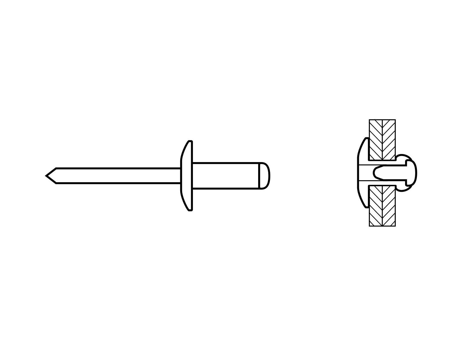 Blindnitte i aluminium med stålstift og stort rundt hoved sikrer en fast og vibrationsbestandig samling, selv under belastning. Det forstørrede hoved giver en bred kontaktflade, hvilket reducerer risikoen for indtrykninger og sikrer jævn lastfordeling. Velegnet til montering i blødere eller tyndere materialer, hvor ekstra støtte omkring hullet er nødvendig.