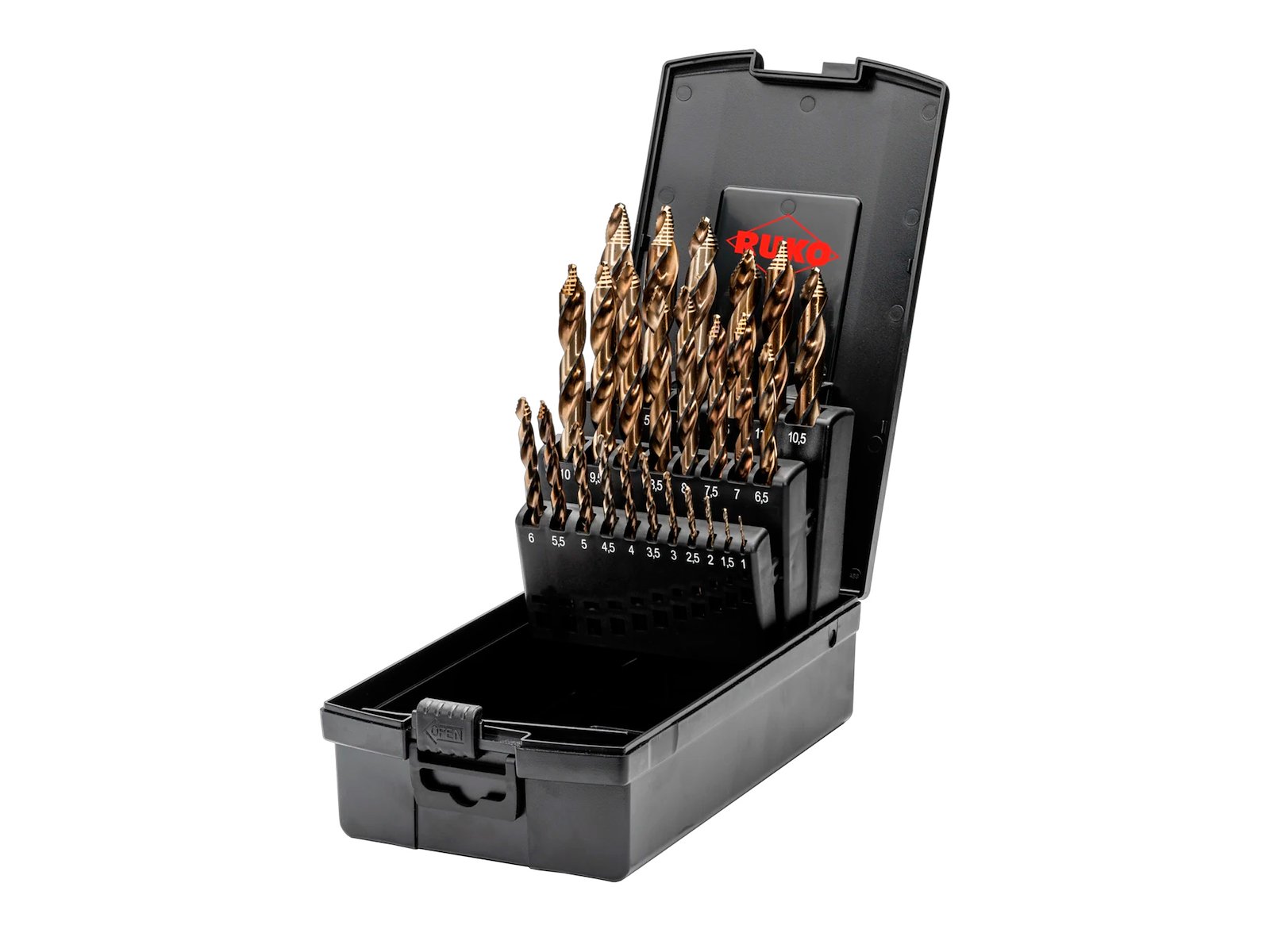 Denne Ruko borskassette 1–13 × 0,5 mm i HSS-Co 5 er velegnet til præcise og krævende boreopgaver. FLOWSTEP-spidsen centrerer sikkert og muliggør hurtig boring, også på runde overflader uden at glide. Borene i HSS-Co 5 (5 % kobolt) giver høj slid- og varmebestandighed og dermed lang levetid. 3-fladet skaft sikrer fast greb i borepatronen ved både håndholdt og stationær boring. Se også flere løsninger under borkassetter.