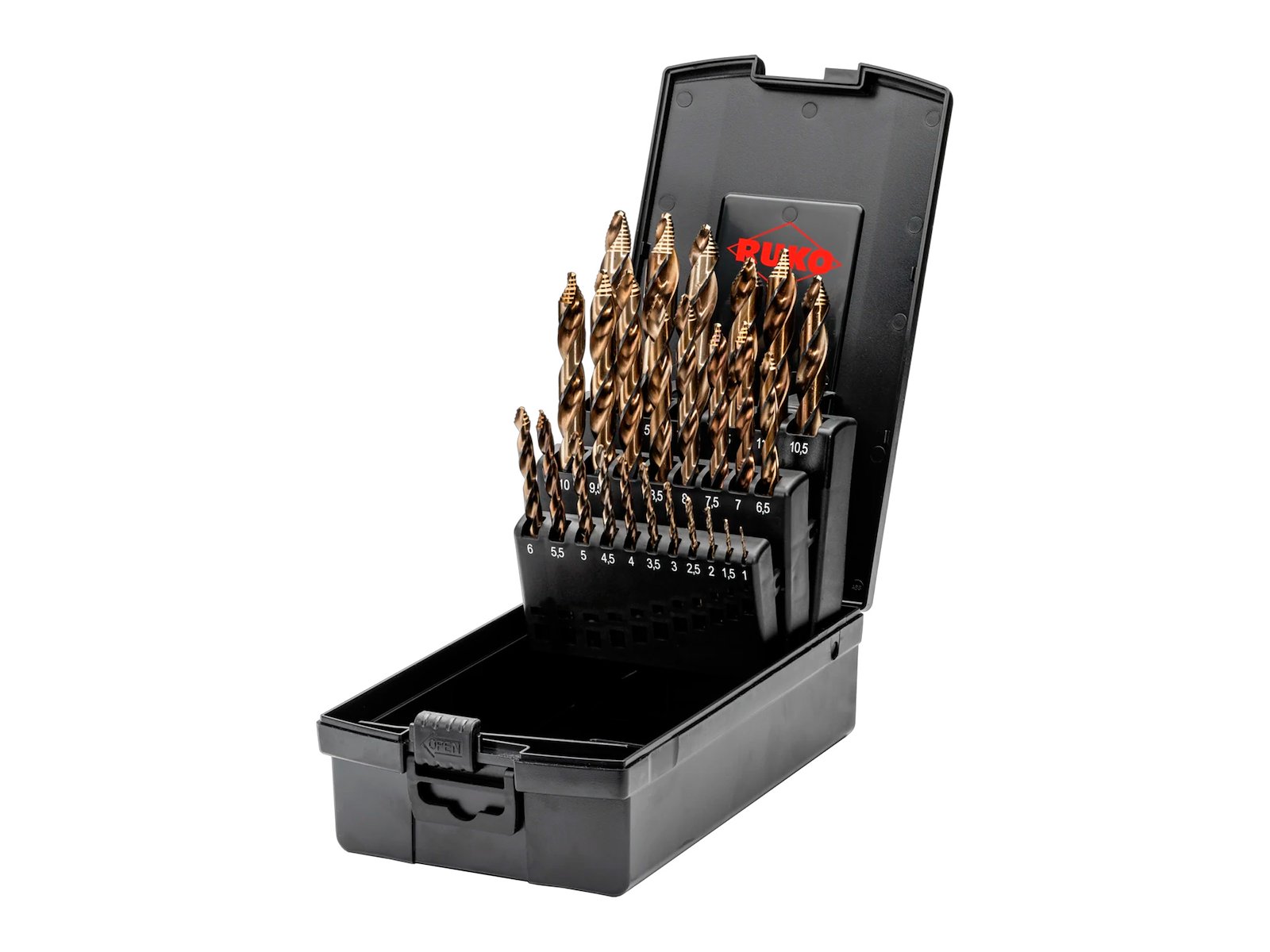 Denne borskassette er velegnet til præcise og krævende boreopgaver. FLOWSTEP-spidsen centrerer sikkert og muliggør hurtig igangsætning, også på runde overflader uden at glide. Borene er fremstillet af slebet højhastighedsstål (HSS-G) for ensartet skæreevne og god varmebestandighed. 3-fladet skaft sikrer et fast greb i borepatronen og stabil kraftoverførsel ved både håndholdt og stationær boring.