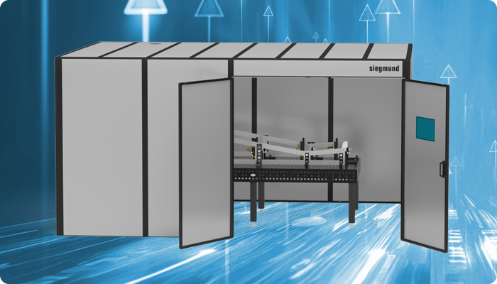Siegmunds modulære laserceller leveres i flere standardstørrelser – samt udvidelsesmoduler som tag og vægelementer. Det gør det muligt at starte kompakt og udvide cellen i takt med stigende kapacitetskrav eller nye emner.