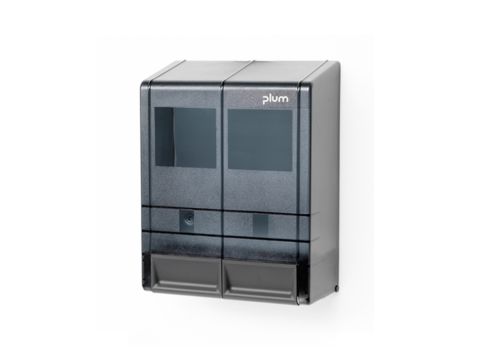 • Et fleksibelt dispensersystem med aluminium bagstykke og en solid røgfarvet polycarbonat kappe. Fås i 2  størrelser, hvori alle 0,7 , 1,0 og 1,4 l bag-in-box produkter (Sæber/Håndrens/Håndcremer) kan kombineres.