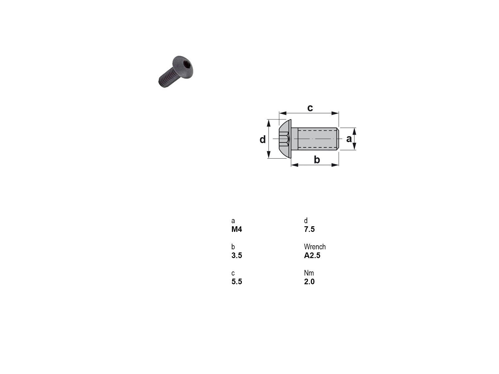 Canela skrue 1814 er designet til præcisionsfastgørelse i diverse applikationer. Med en hoveddiameter på 7,5 mm og et M4x0,7 udvendig gevind, tilbyder denne skrue optimal fastholdelse. Dens robuste konstruktion med en unbraco kærv på 2,5 mm sikrer nem installation og fjernelse. Velegnet til både professionelt og privat brug.