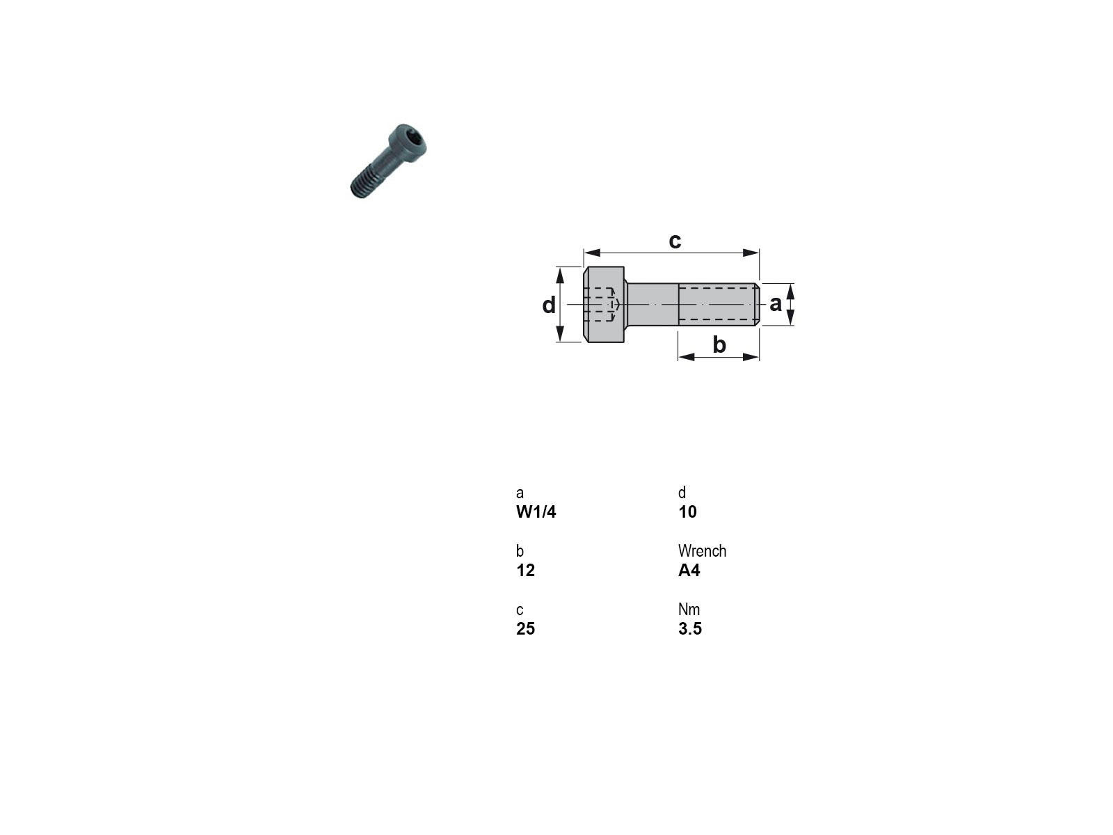 Canela skrue model 1614 kombinerer robusthed og præcision, ideel til forskellige monteringsopgaver. Med en hoveddiameter på 10 mm og en Withworth 1/4" gevindtype, sikrer denne skrue en stabil og sikker fastgørelse. Gevindlængden på 12 mm og en totallængde på 25 mm gør den alsidig til både tynde og medium materialer. Dens 4 mm unbraco kærv tillader nem og hurtig installation med standard unbraco nøgler.