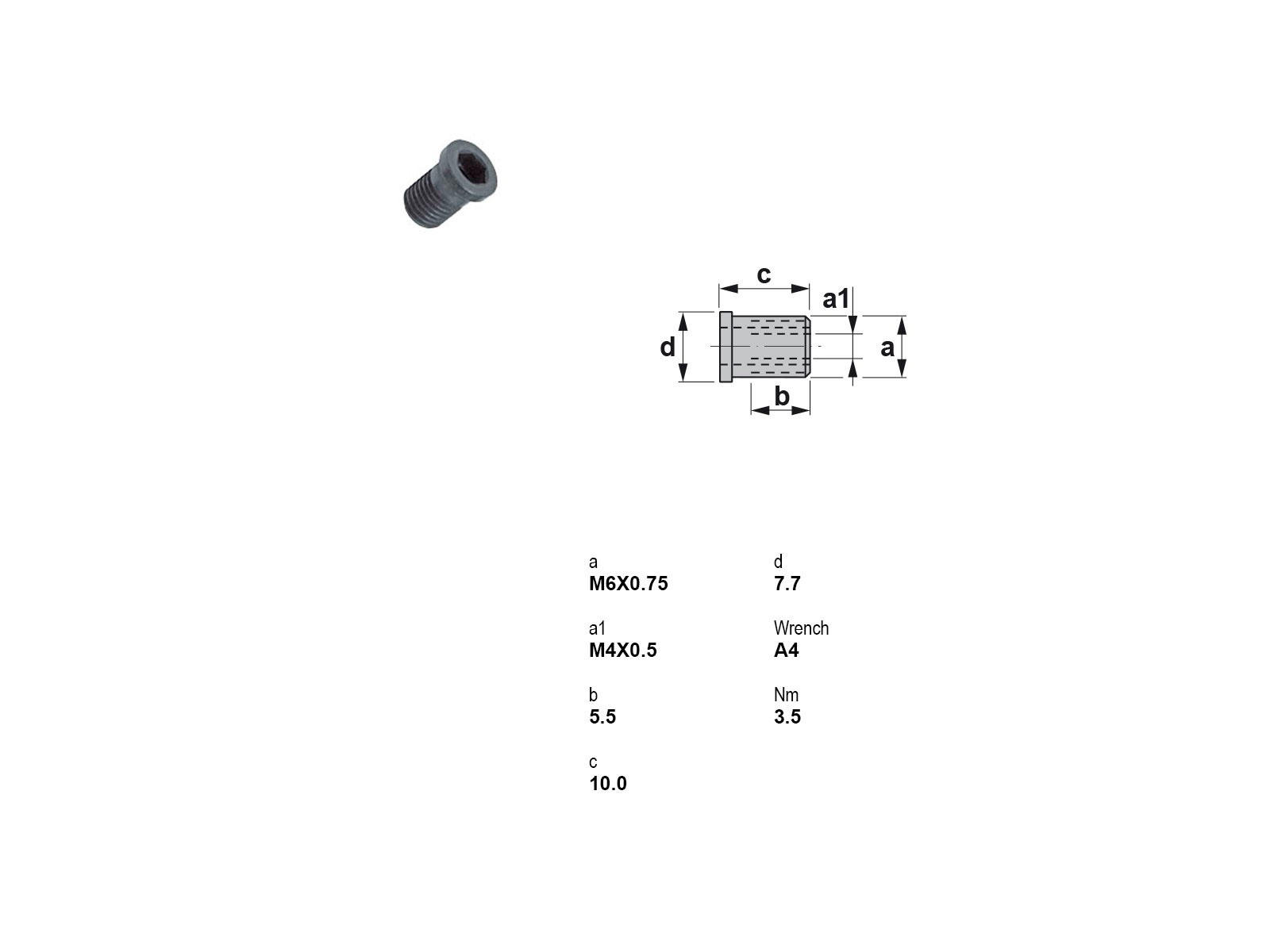 - Indvendigt gevind: M4x0,5