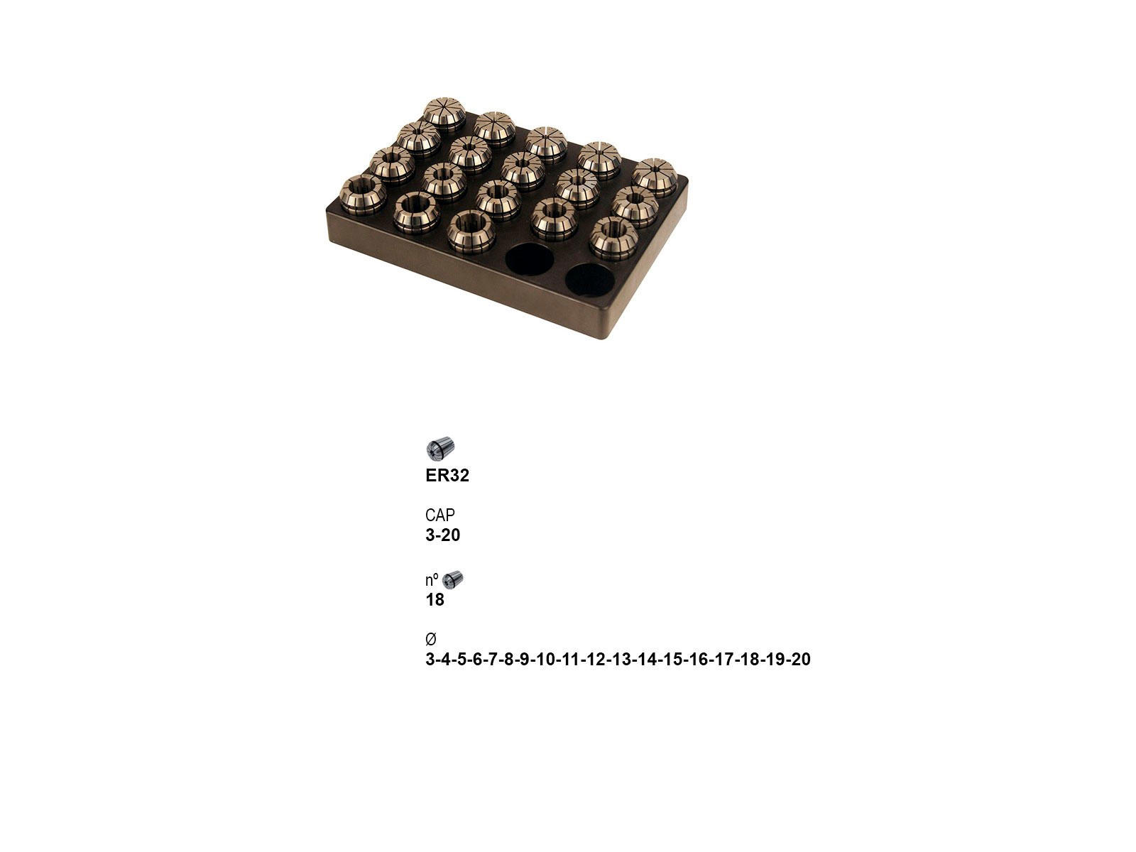 Canela SET ER32 er et komplet sæt med 18 spændtænger efter DIN6499 (ER) form B.