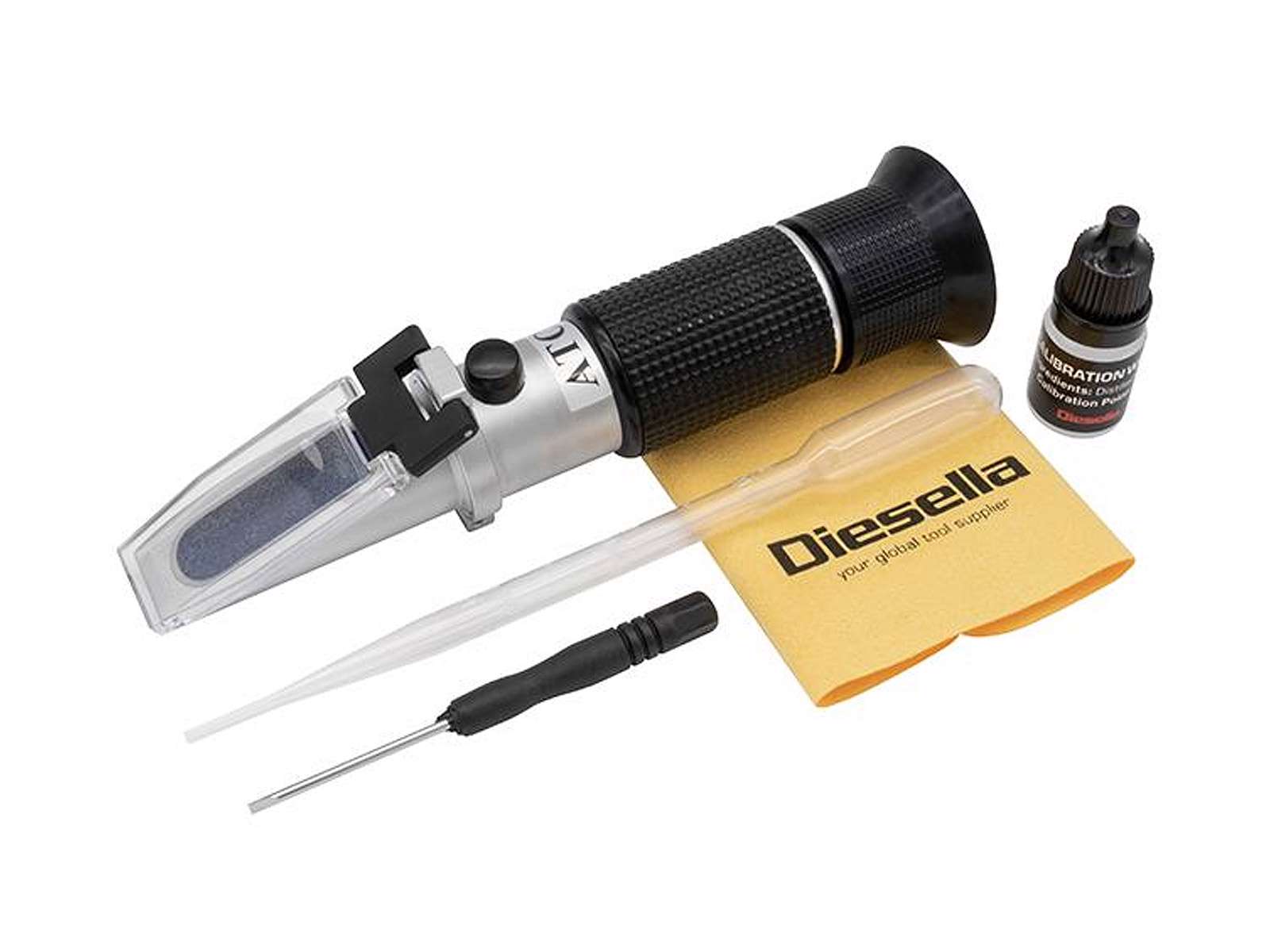 Specielt lavet til bilindustrien, giver dette refraktometer dig mulighed for at teste koncentrationen af ethylenglycol (EG) og propylenglycol (PG) i frostvæsker. Instrumentet tilbyder også skalaer til batterisyre (BF) og sprinklervæske (CF).