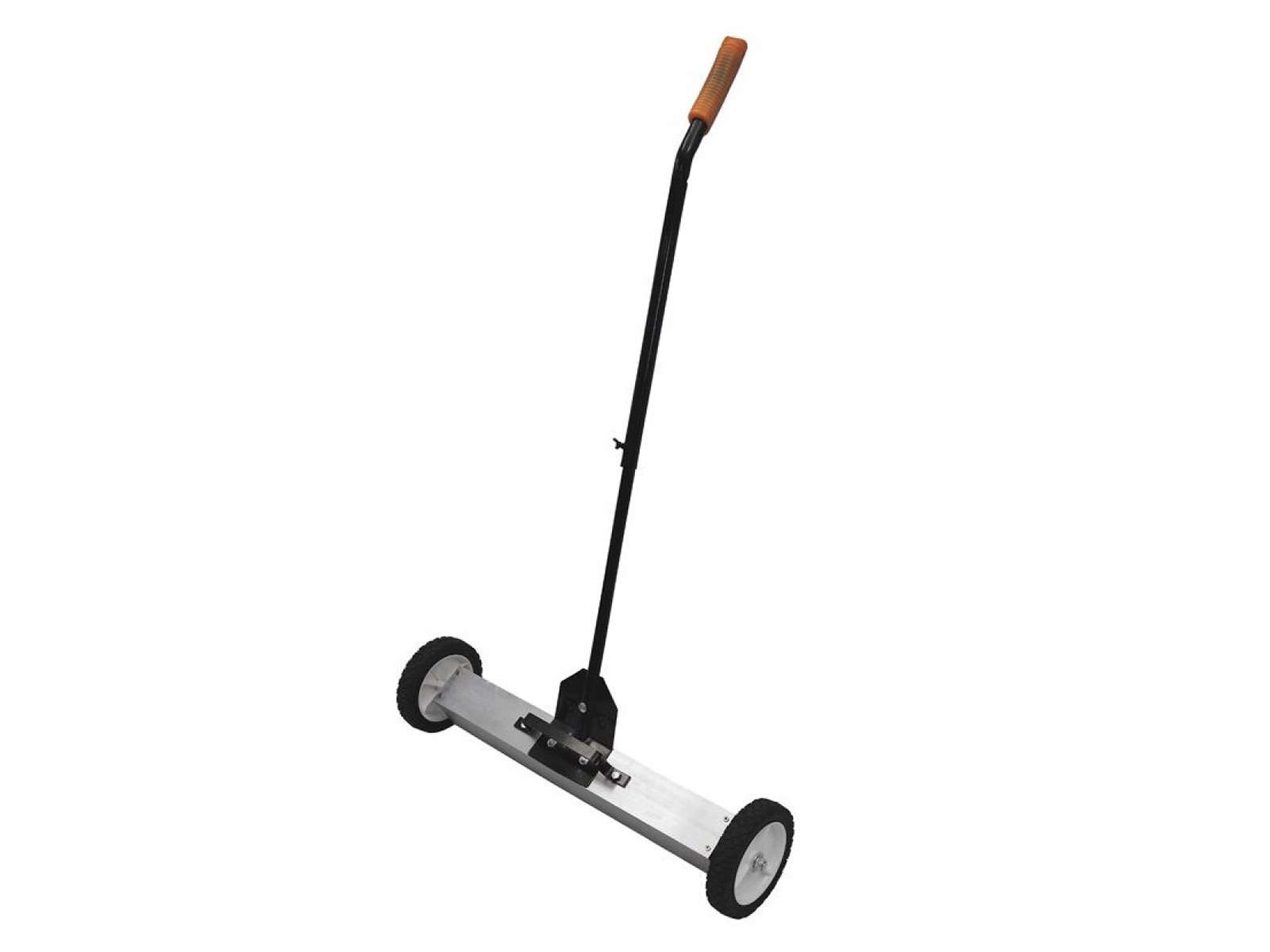 Effektiv magnetisk fejemaskine til oprydning af spåner, søm, skruer og andre metaldele på store arealer. Den 600 mm brede fejebredde dækker hurtigt gulve, mens teleskophåndtaget kan højdejusteres for ergonomisk arbejde. Opsamlet metal frigøres straks via et enkelt træk i udløserhåndtaget, så arbejdet glider videre uden afbrydelser. Velegnet i værksteder, produktionshaller, sportsarealer og parkeringspladser.