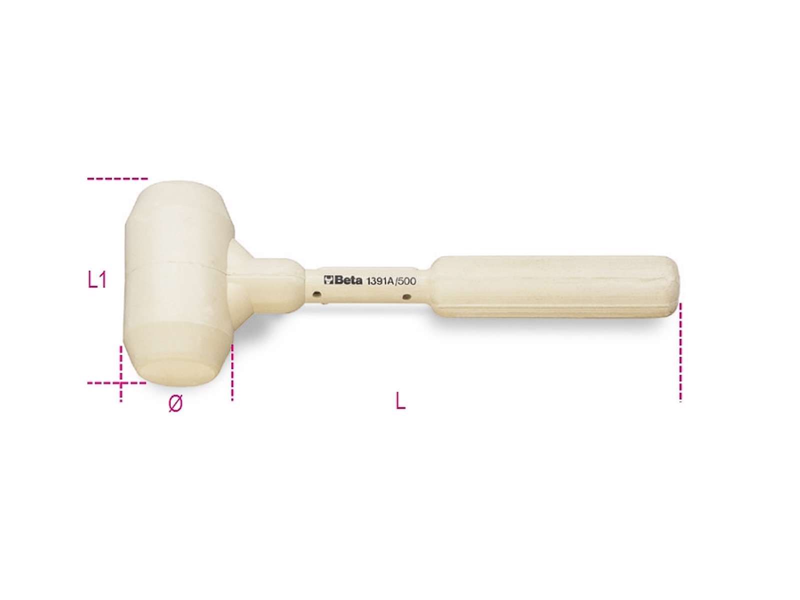 • Beta Tools Dødslagshammer, model 1391A, er udviklet til professionelle, der arbejder med fliser. Denne hammer er designet til at være let at bruge og effektiv, med funktioner som rekylfri slag takket være de udskiftelige plastslagbaner. Dens håndtag er helt dækket med gummi for et fast greb.