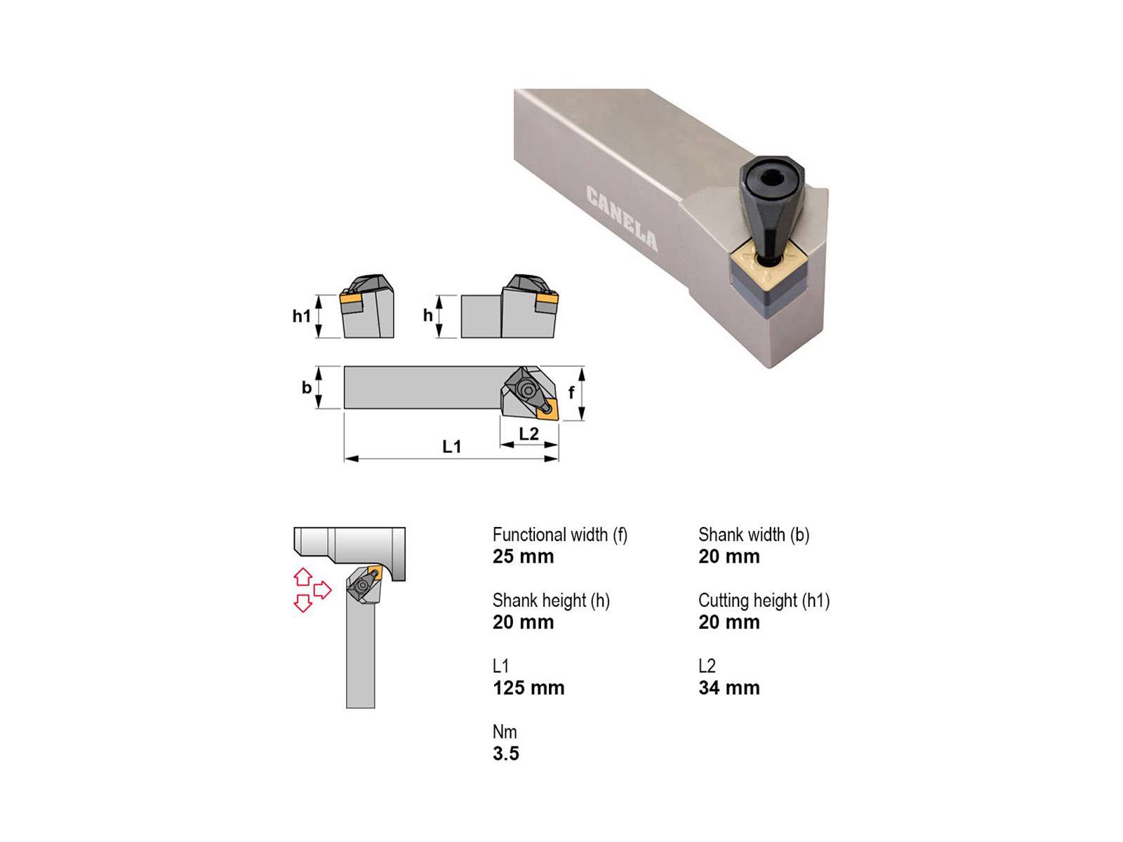 Canela stålholder DCLNL2020K12-N er designet til præcisionsarbejde inden for metalbearbejdning. Med en længde på 125 mm og et robust 20x20 mm skaft sikrer denne stålholder stabilitet og præcise resultater. Holderen er ideel til venstreindgreb og anvender CN..1204.. platte. Perfekt til krævende opgaver uden behov for køling.