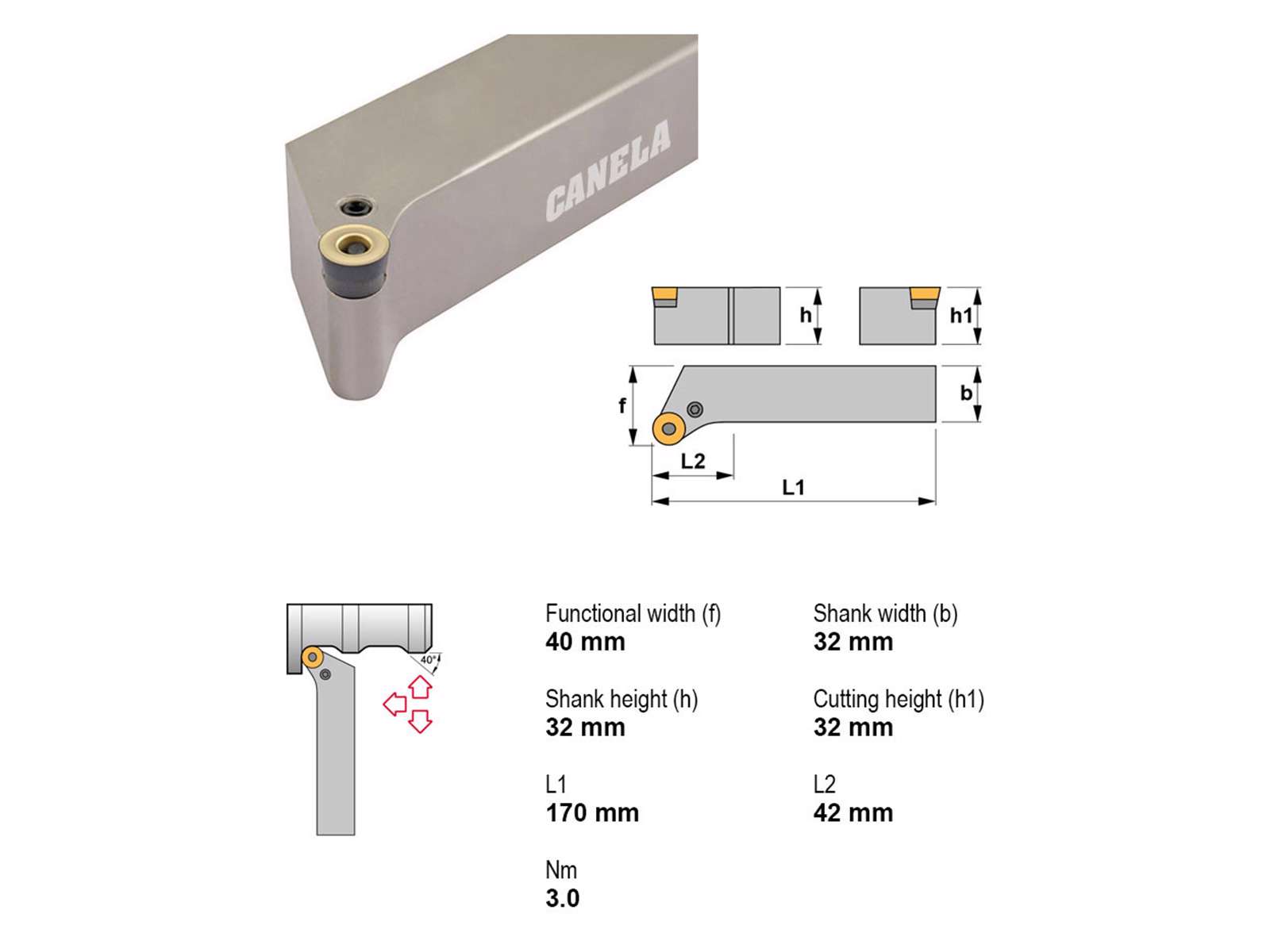 Canela stålholder PRSCR3232P20 er en robust og præcisionsfremstillet holder til metalbearbejdning. Designet med højreindgreb og uden køling er den ideel til krævende opgaver. Kompatibel med RC.. platte og måler 32x32 mm i skaftet, hvilket sikrer stabilitet og præcision.