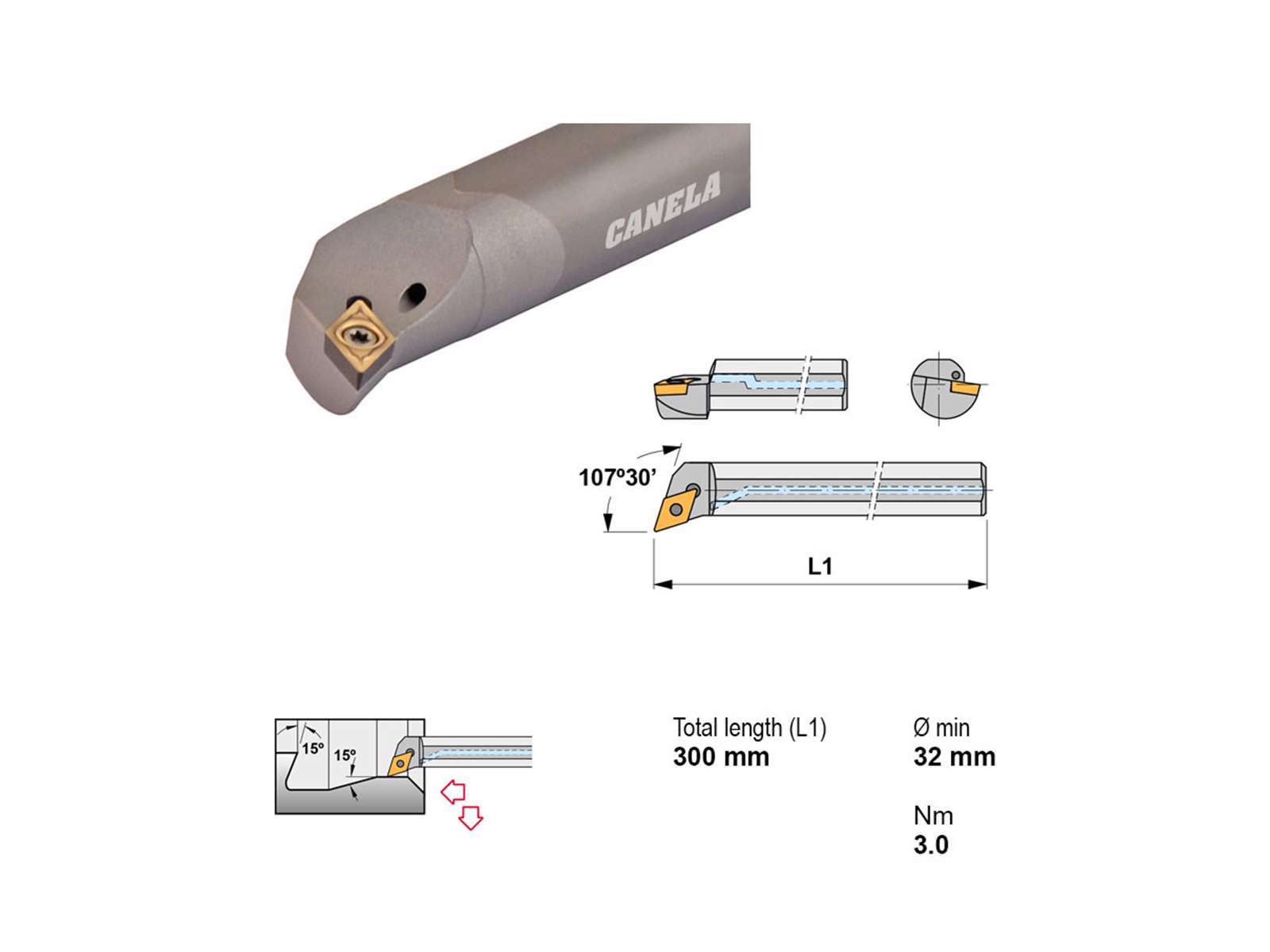 Canela udborestål E20S-SDUCR11 er en præcisionsværktøj til drejning i høj kvalitet. Med en skærediameter på 25 mm og skaftdiameter på 20 mm sikres optimal stabilitet. Egnet til DC..11T3 platte og har indbygget køling for længere levetid.