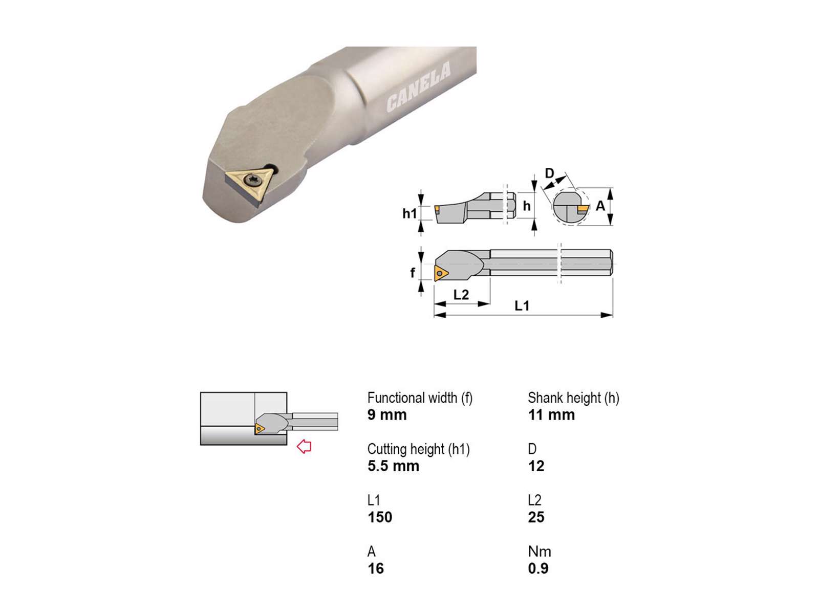 • Canela udborestål S12M-STFCR11 er et præcisionsværktøj designet til krævende bearbejdningsopgaver. Med en skaftdiameter på Ø12 mm og en totallængde på 150 mm sikrer det høj stabilitet og præcision. Det er kompatibelt med TC..1102.. plattetyper og har højreindgreb, hvilket gør det ideelt til professionelle applikationer, hvor nøjagtighed er afgørende.