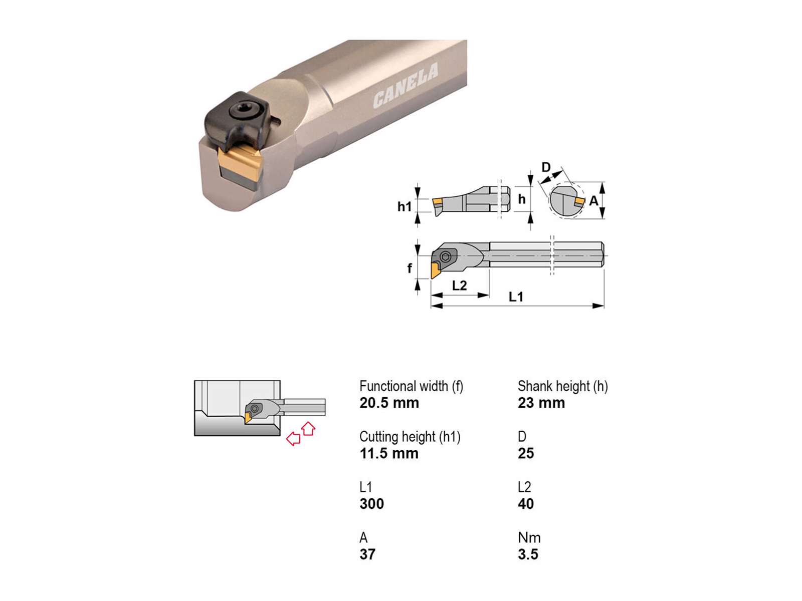 Canela S25T-CKUNR16 udborestål er et robust værktøj til præcisionsbearbejdning af indvendige huller uden køling. Det sikrer pålidelig ydelse med højre indgreb og kompatibilitet med KNUX1604 platte.