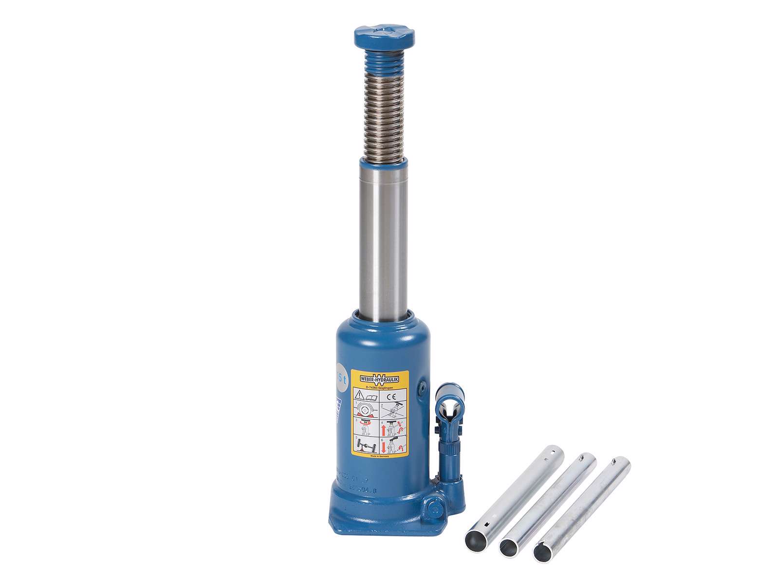 Hydraulisk flaskedonkraft med 1-trins cylinder og spindelforlænger til de helt tunge løft