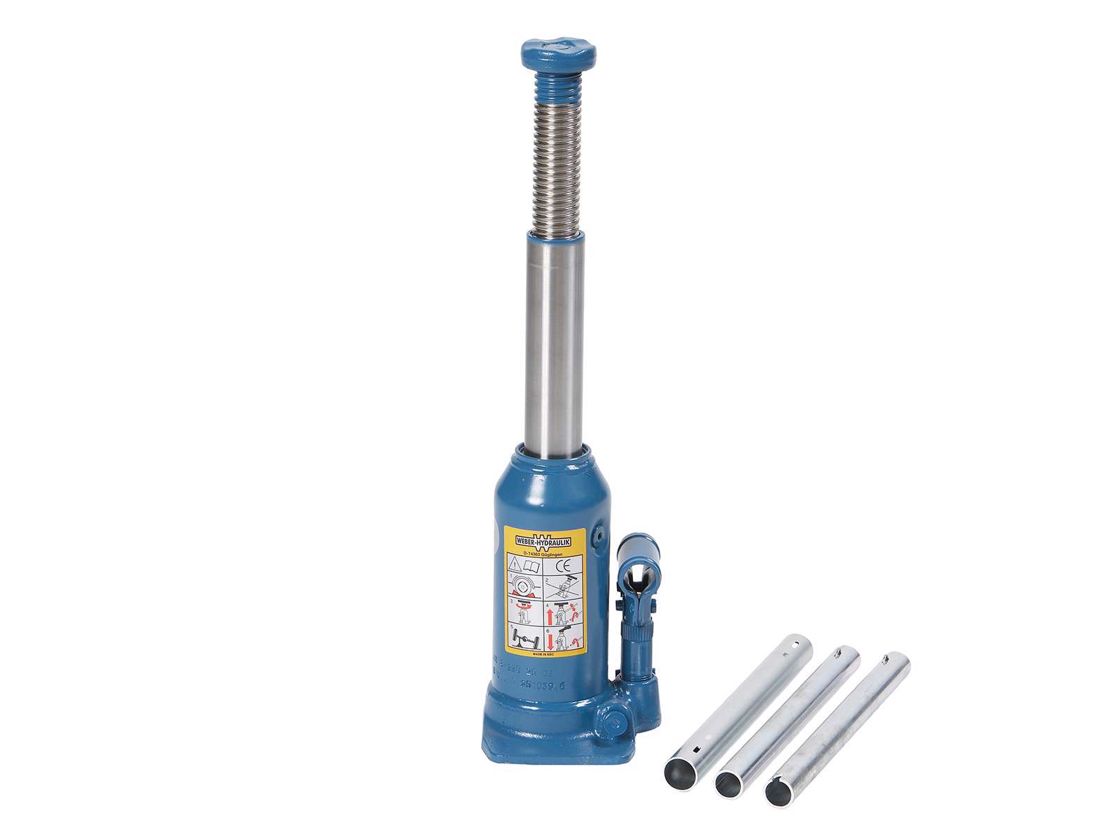 Hydraulisk flaskedonkraft med 1-trins cylinder og spindelforlænger