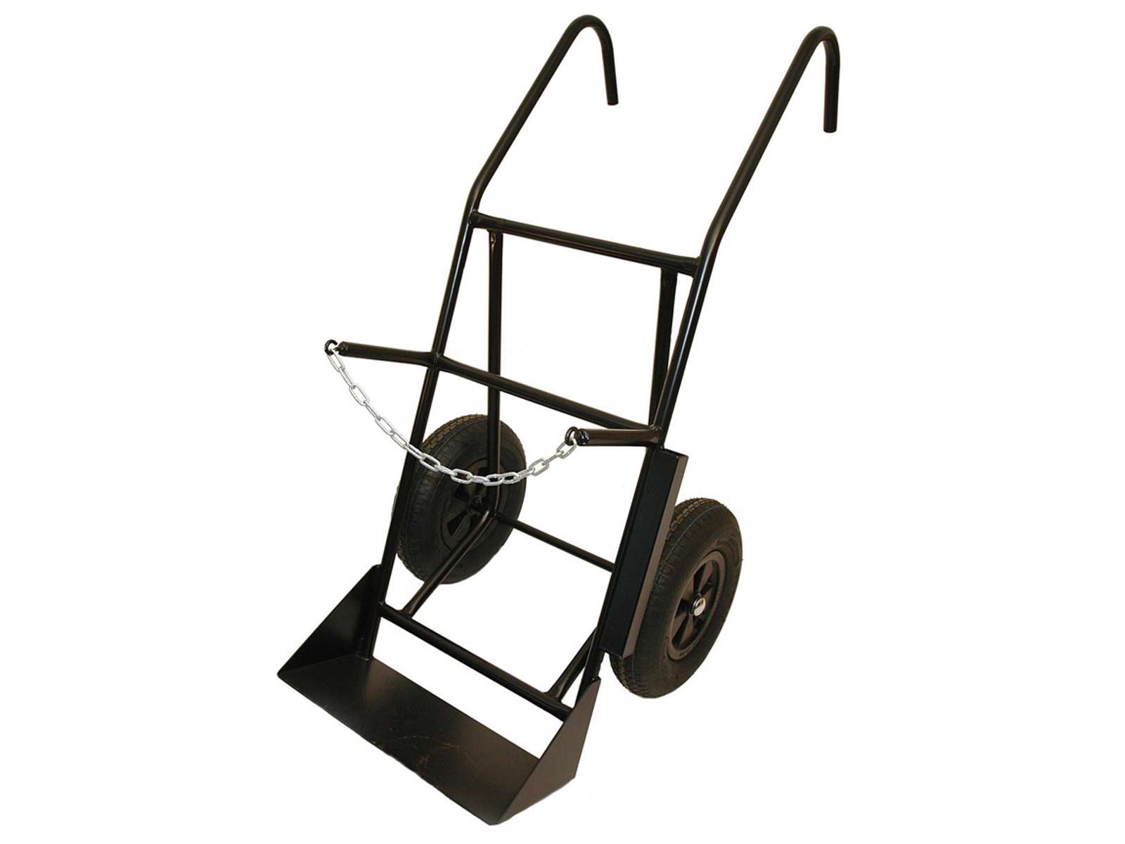 Denne avancerede flaskevogn er designet til transport af to store flasker med høj kapacitet. Med sit robuste luftgummihjulsæt giver den enestående mobilitet og let håndtering af 40 liters acetylen- og 50 liters oxygenflaskerne. Vognens tekniske egenskaber sikrer stabilitet og sikkerhed under transporten