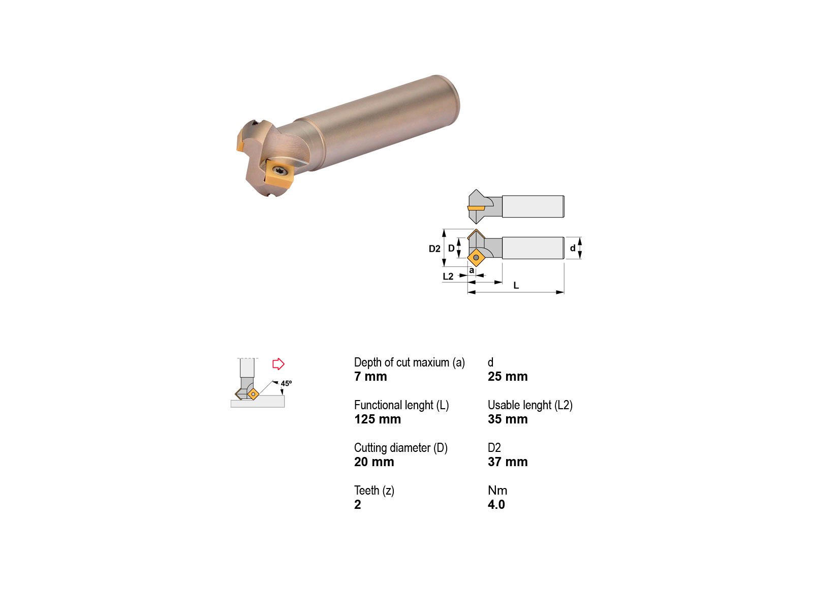 Dette højpræcisions knivhoved fra Canela er designet til effektiv og præcis skæring. Med en skærediameter på 20-37 mm og en robust konstruktion er dette værktøj ideelt til en række skæreopgaver. Knivhovedet er udstyret med to skær og en solid SPM 1204 platte, hvilket sikrer holdbarhed og præcision under brug.