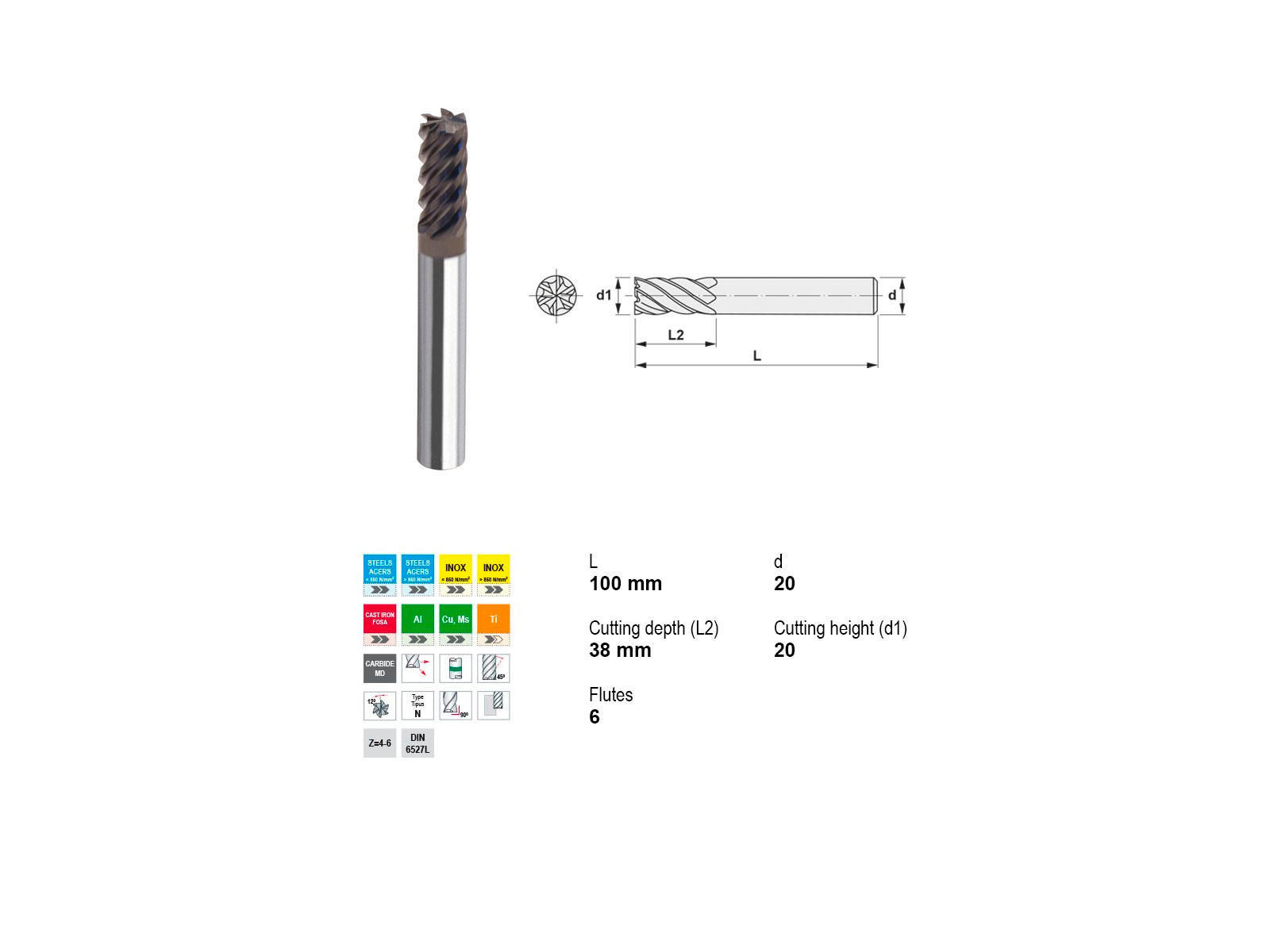 Canela fræseren er designet med 6 skær og robuste specifikationer for alsidig bearbejdning af metaller. Med et 20 mm skaft og skærediameter samt en skæredybde på 35 mm og skærelængde på 10 mm, er dette værktøj ideelt til præcisionsopgaver i både bløde og hårde metaller. Dens avancerede design gør det muligt at arbejde effektivt med forskellige typer af stål og aluminium, og sikrer holdbarhed og ydeevne under krævende forhold.