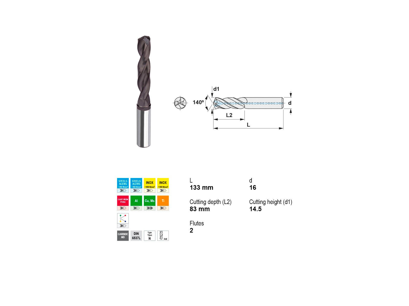 Canela HM-bor er designet med to skær for optimal boring og præcision. Boret er fremstillet i overensstemmelse med DIN 6537L og har en effektiv TiAlN-belægning, som øger holdbarheden og reducerer slid. Med en hoveddiameter på 14,5 mm og en skæredybde på 83 mm, sikrer dette bor præcise og rene snit. Den integrerede kølekanal forbedrer ydeevnen ved at holde boret køligt under brug. Dette alsidige værktøj er ideelt til arbejde med en række materialer, herunder forskellige typer stål og aluminium.