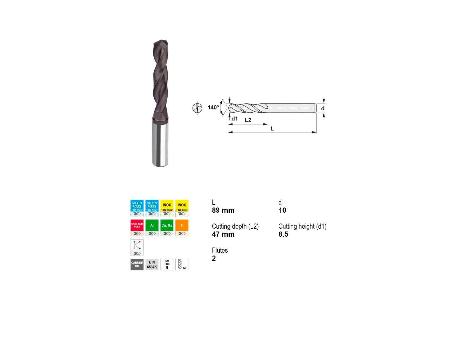 Robust Canela HM-bor med 2 skær og TIALN-coating, designet til præcist og effektivt arbejde i flere materialer.