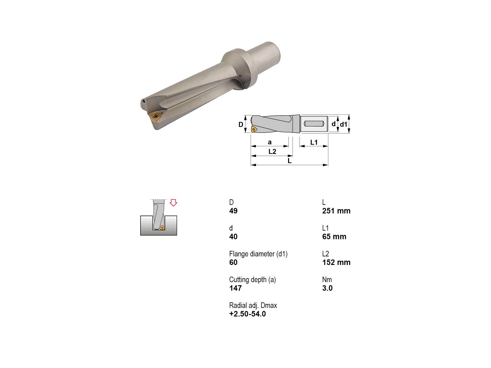 Canela Korthulsbor til præcise skæringer. Med en længde på 251 mm og en skærediameter på 49 mm, tilbyder dette værktøj en skæredybde på 147 mm. Robust og effektiv til dine behov.