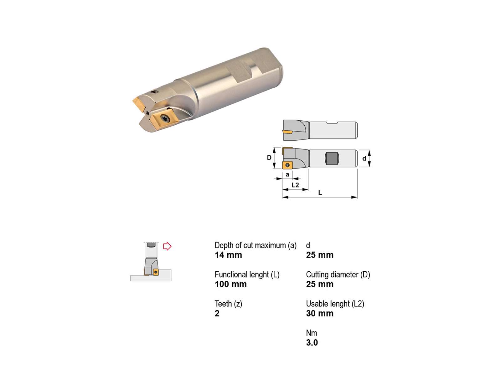 Canela endefræser 90° Ø25 med 2 skær tilbyder præcision og holdbarhed for professionelle bearbejdningsopgaver. Dette værktøj er ideelt til detaljeret fræsning med sine nøjagtige mål og robuste design.