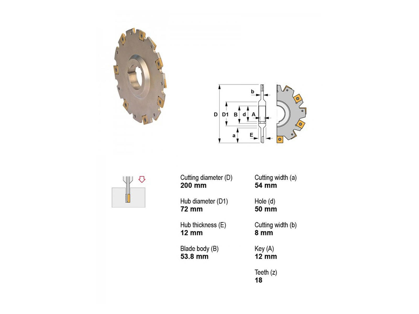 Canela Skivefræseren er ideel til præcise og effektive fræseopgaver. Med en imponerende skæredybde på 54 mm og skærebredde på 8 mm leverer denne fræser fremragende resultater. Den robuste konstruktion inkluderer en hoveddiameter på 200 mm og en skærediameter på ligeledes 200 mm. Udstyret med et Ø50 mm fæste og 18 skarpe tænder, sikrer den maksimal præcision. Denne model er kompatibel med WDM..03 platter og er designet til anvendelse uden kølesystem, hvilket gør den velegnet til en række materialer.