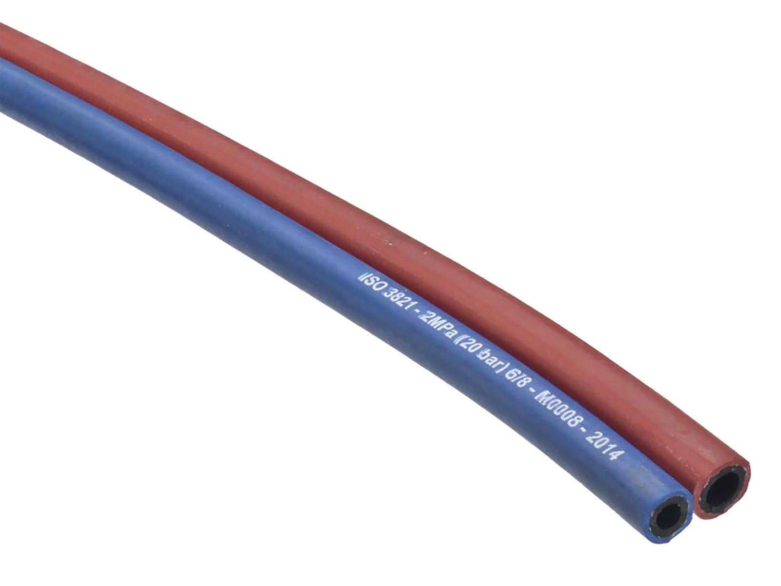 Ekstruderet trykslange til svejsning. Den bærer et ydre af EPDM i skarpe rød/blå nuancer og en indvendig overflade af glat sort NR. Designet inkluderer et indlæg af syntetisk garn for at styrke slangens integritet. Som en mærkning for brugeres tillid og sikkerhed, er den præget med en fortløbende hvid skrift angivende “ISO 3821 2 MPa (20 bar)”. Den blå slange er dedikeret til oxygen, mens den røde er beregnet til acetylen. Desuden er produktet konstrueret med særlig vægt på vejr- og ældningsbestandighed.