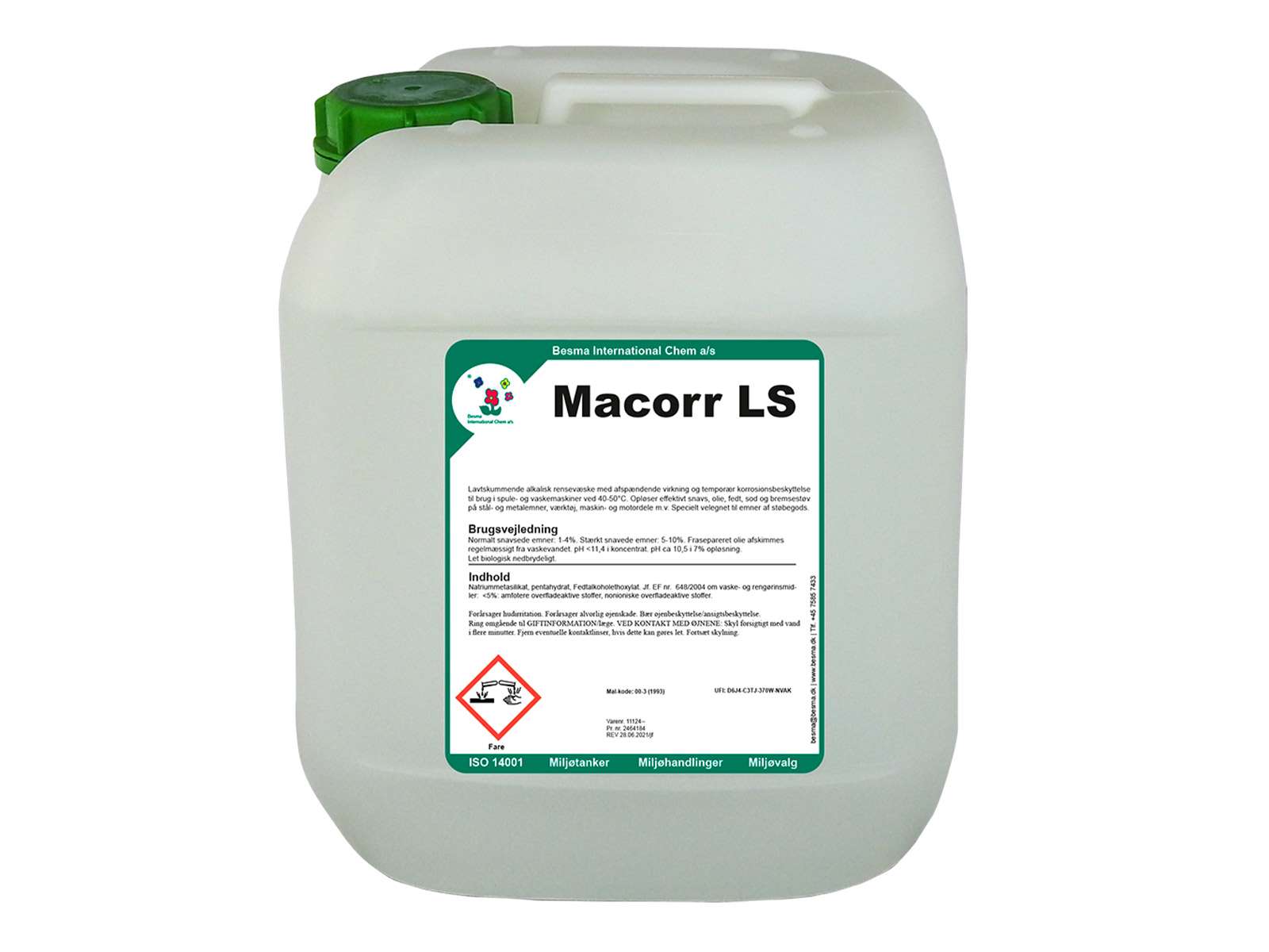 Besma Macorr LS er en alkalisk rensevæske, der er velegnet til at afrense og affedte forskellige emner såsom værktøj, maskin- og motordele mv. i spule- og vaskemaskiner. Væsken er specielt designet til at virke ved lave temperaturer, og den effektivt fjerner snavs, olie, fedt, sod, bremsestøv og andre urenheder. Macorr LS er kendt for sin lavtskummende egenskab og afspændende virkning, der gør det nemt at arbejde med.