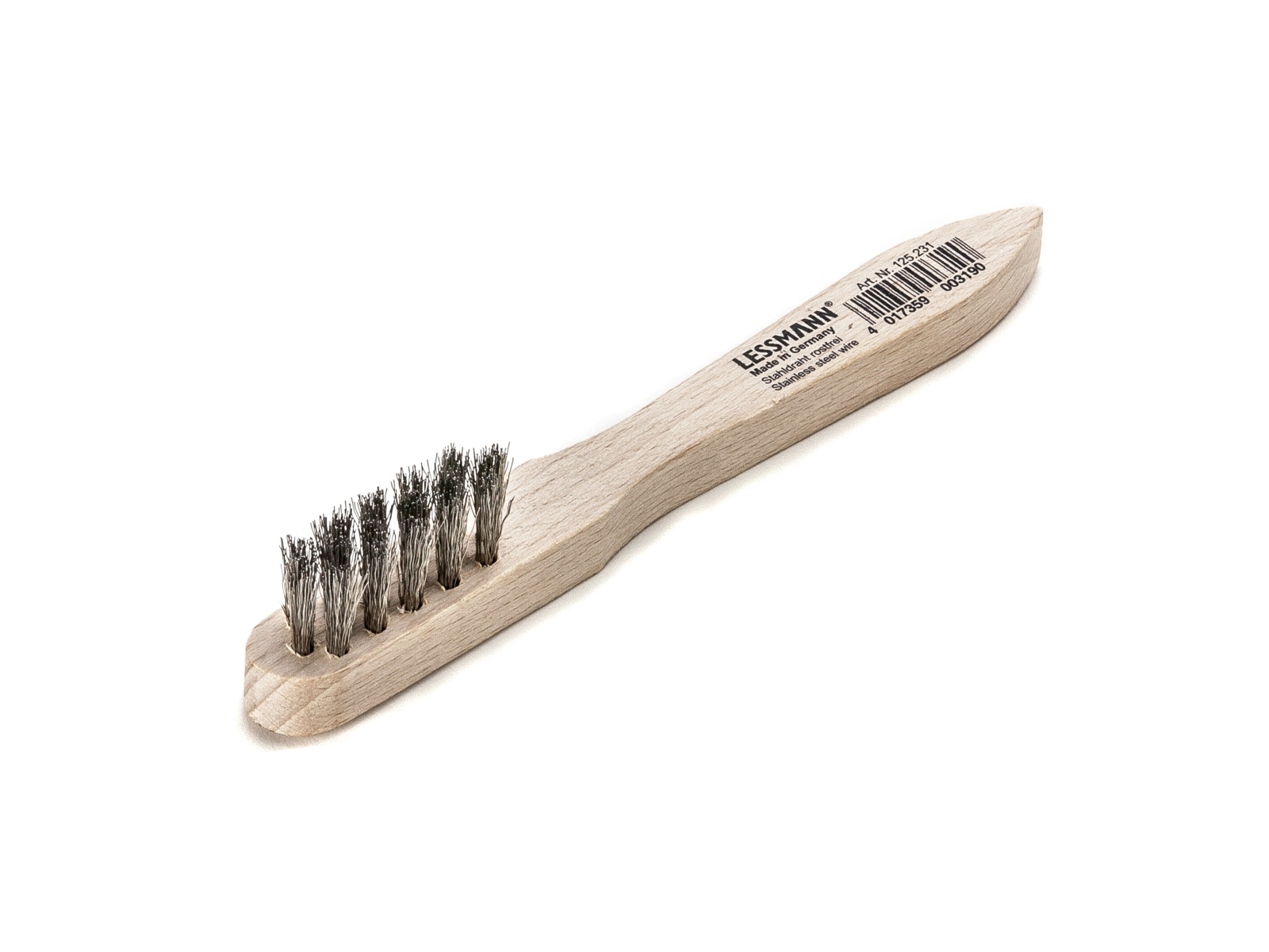 Lessmann tændrørsbørste er udviklet til manuel rengøring af følsomme overflader. Den fjerner skånsomt snavs og aflejringer uden at beskadige materialet. Børsten er velegnet til præcisionsarbejde og har et ergonomisk træskaft, der sikrer et godt greb.