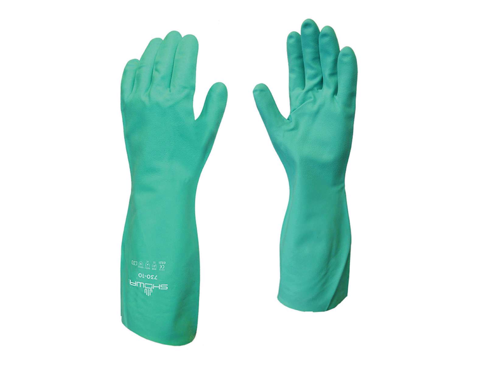 Nitrilhandske af høj kvalitet, udstyret med en 'Flock lined' inderside for yderligere komfort under brug. Denne handske er grøn i farven og kendetegnes ved dens teksturerede finish, som er designet til at forbedre grebet. Rullekant er udeladt i designet for et mere raffineret udseende. Med en længde på 33 cm, tilbyder handsken optimal dækning og beskyttelse.